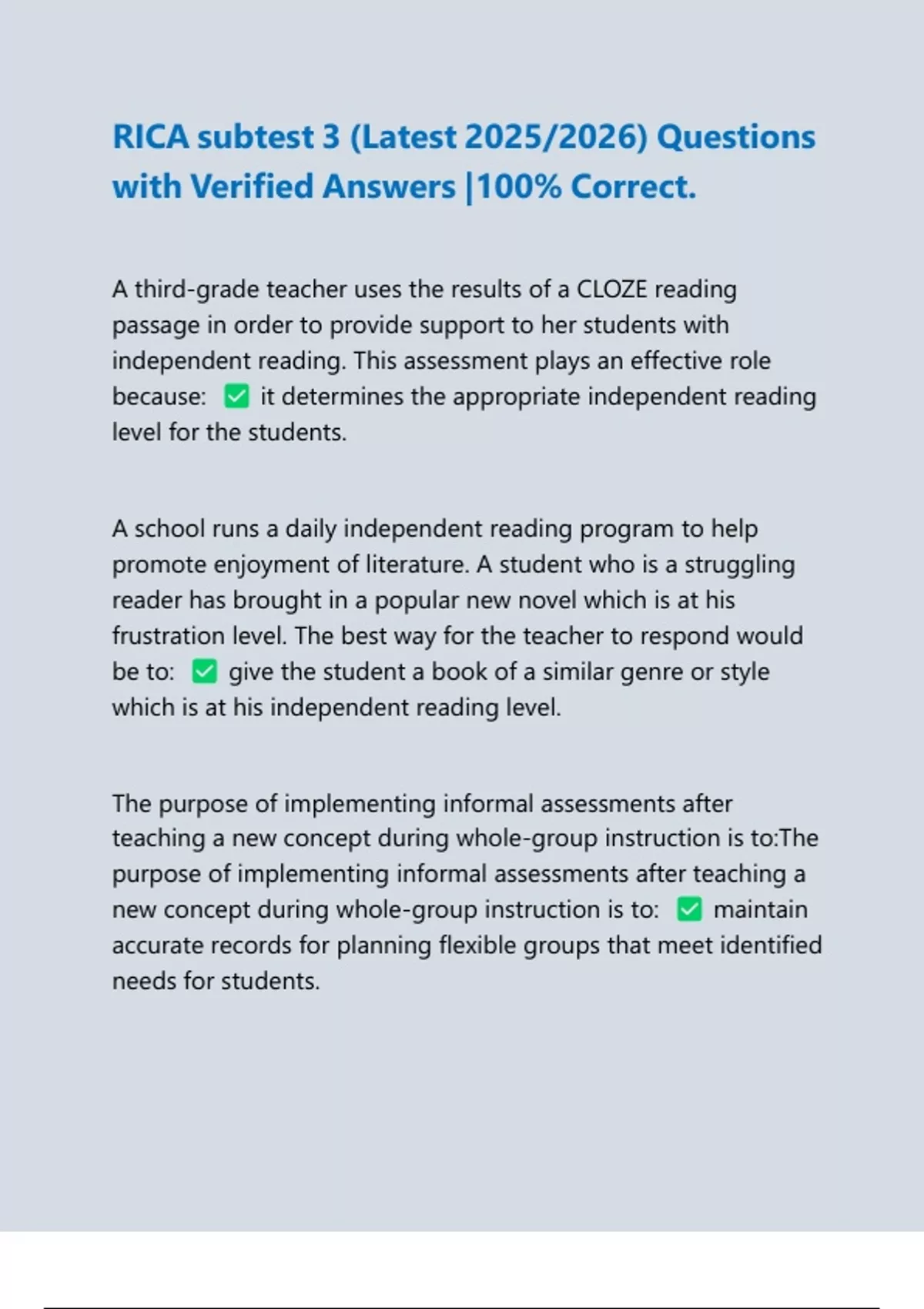 because: it determines the appropriate independent reading
