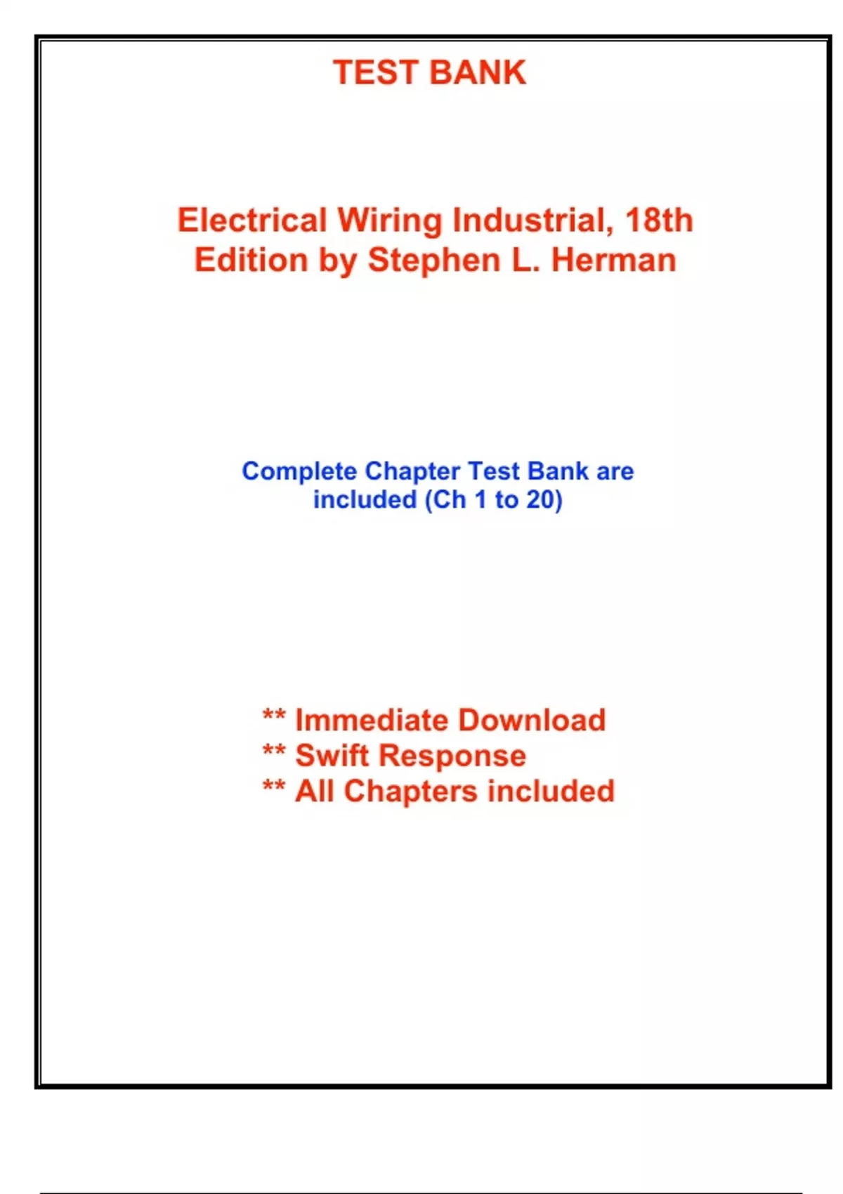 Test Bank for Electrical Wiring Industrial, 18th Edition by Herman (All Chapters included)