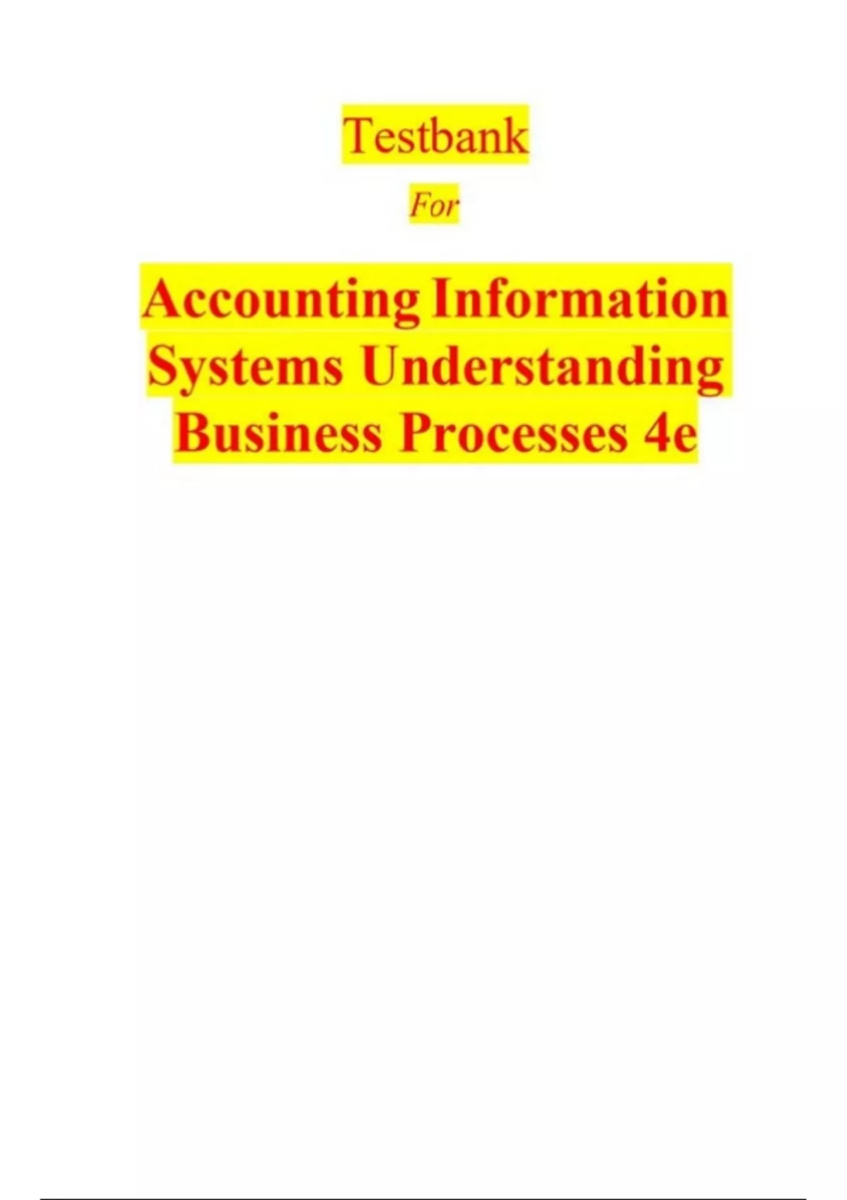 Testbank For Accounting Information Systems Understanding Business Processes 4e, Answered
