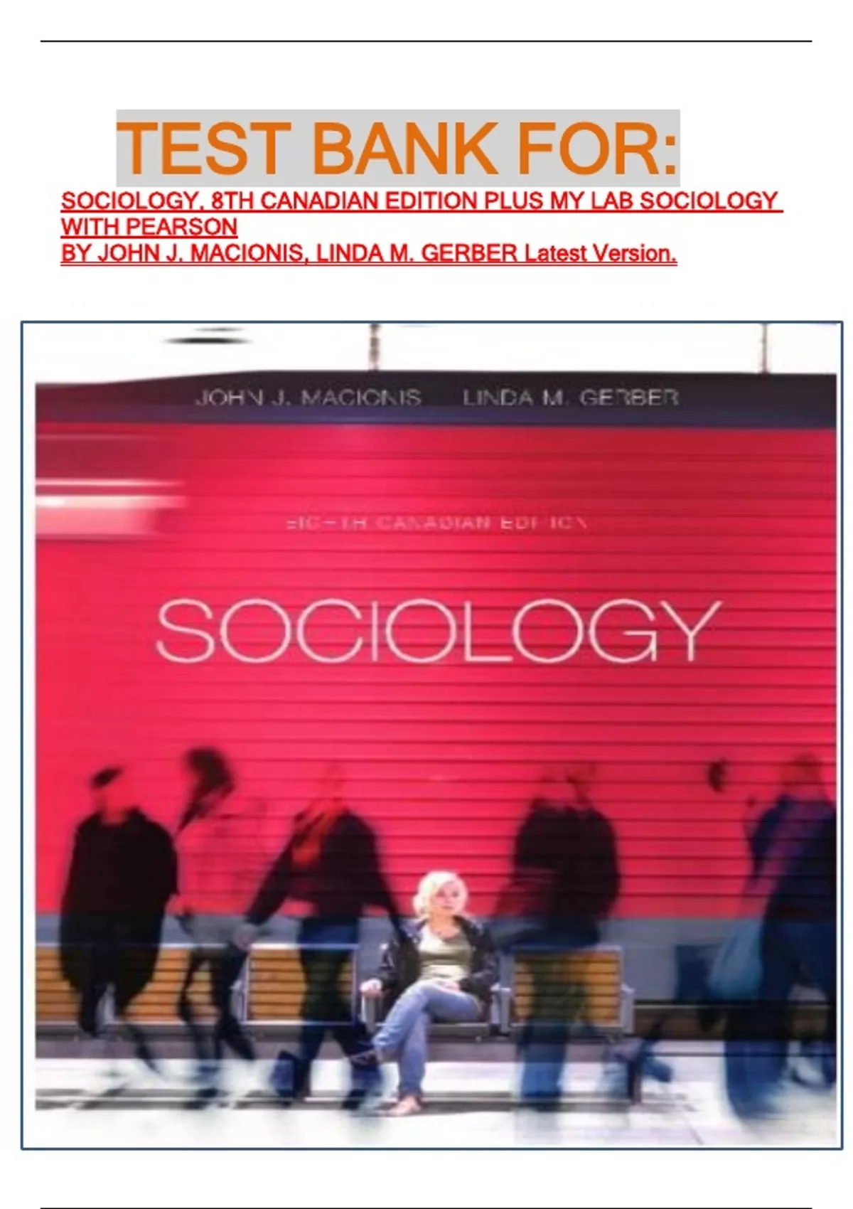 TEST BANK FOR: SOCIOLOGY, 8TH CANADIAN EDITION PLUS MY LAB SOCIOLOGY WITH PEARSON BY JOHN J. MACIONIS, LINDA M. GERBER Latest Version.