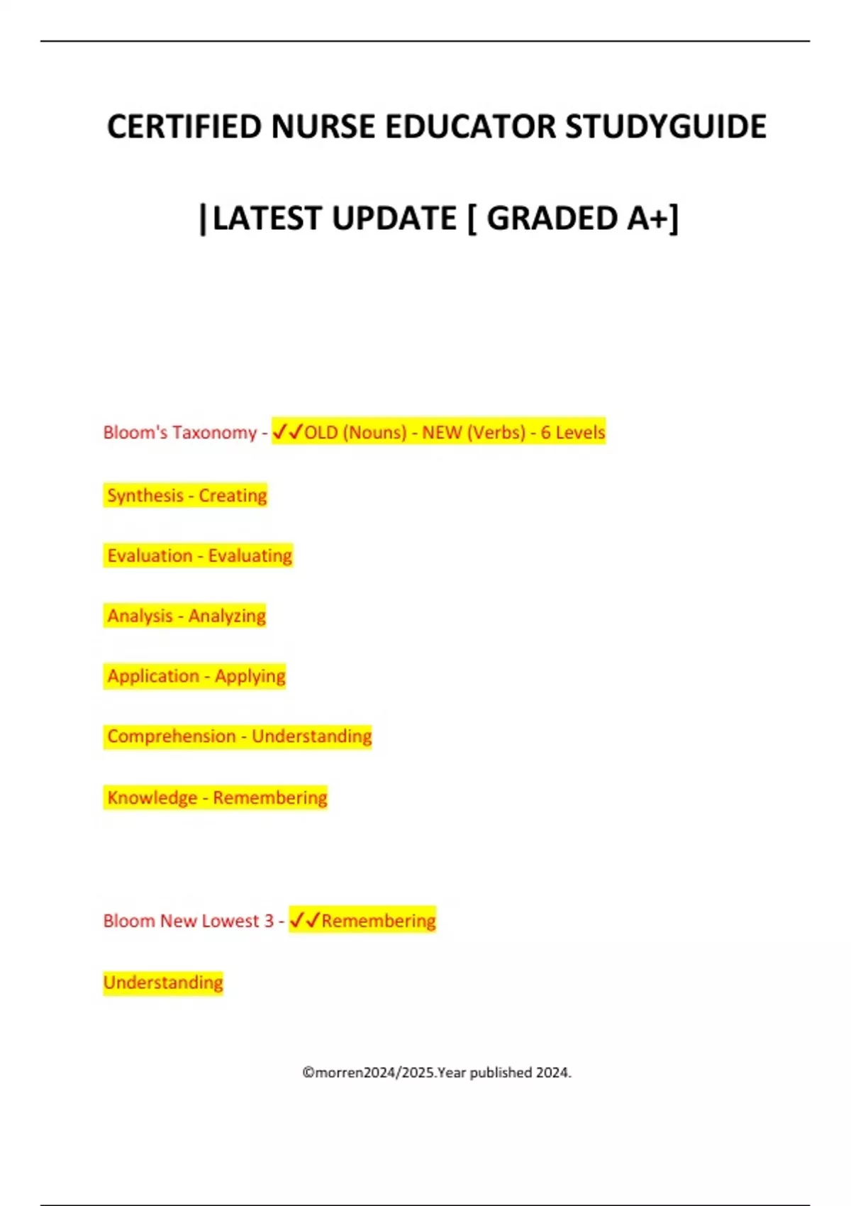Bloom's Taxonomy - ✔✔OLD (Nouns) - NEW (Verbs) - 6 Levels