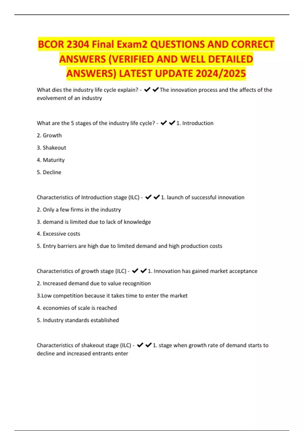 BCOR 2304 Final Exam2 QUESTIONS AND CORRECT ANSWERS (VERIFIED AND WELL DETAILED ANSWERS) LATEST UPDATE 2024/2025