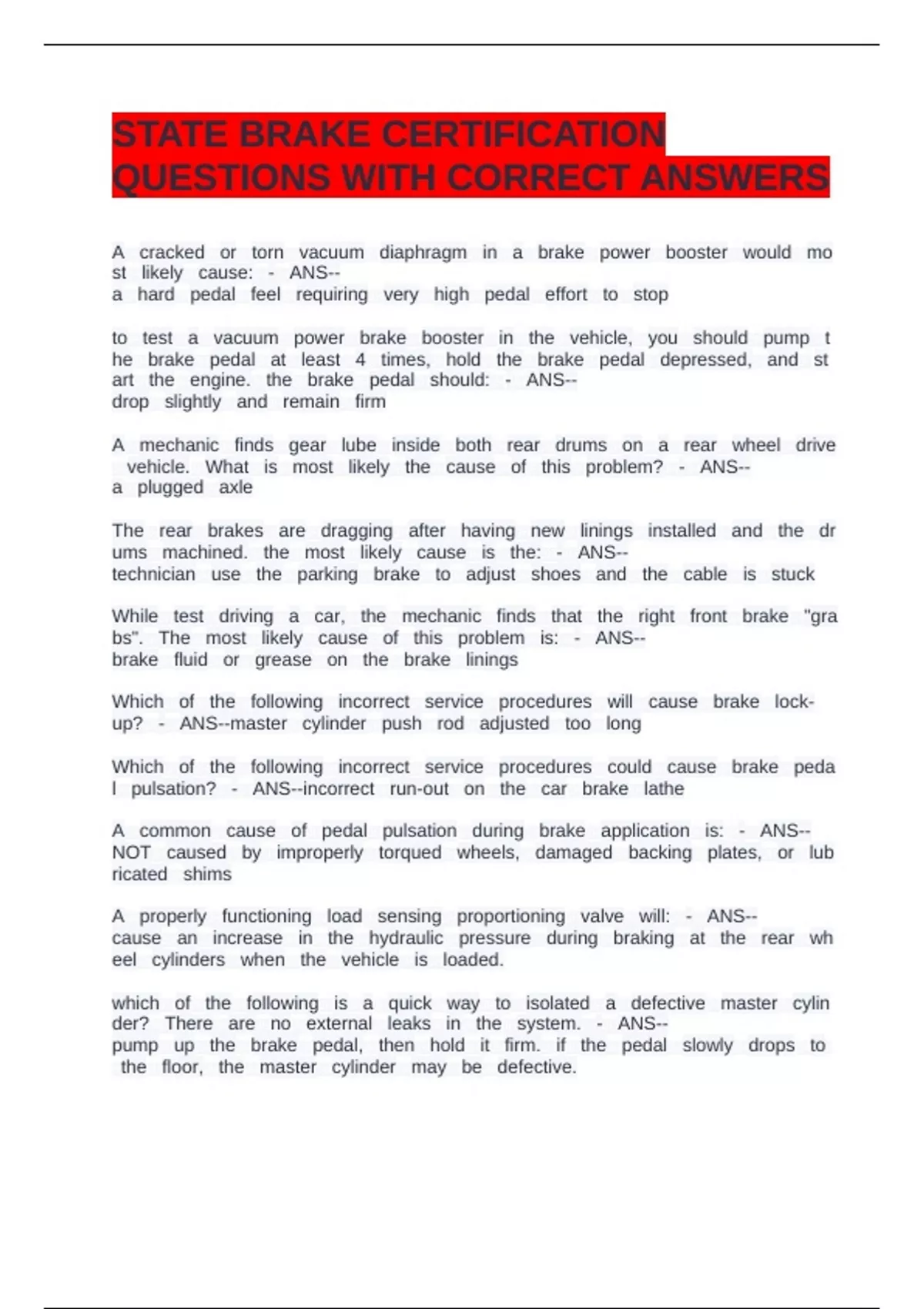 WhichJHofJHtheJHfollowingJHincorrectJHserviceJHproceduresJHwillJHcauseJHbrakeJHlock-