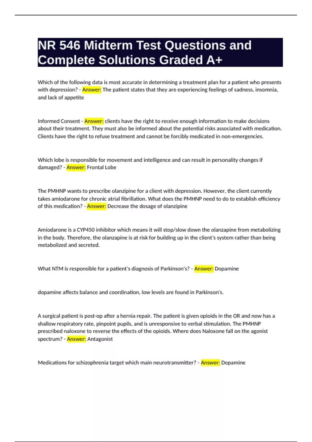 What NTM is responsible for a patient's diagnosis of Parkinson's? - Answer: Dopamine