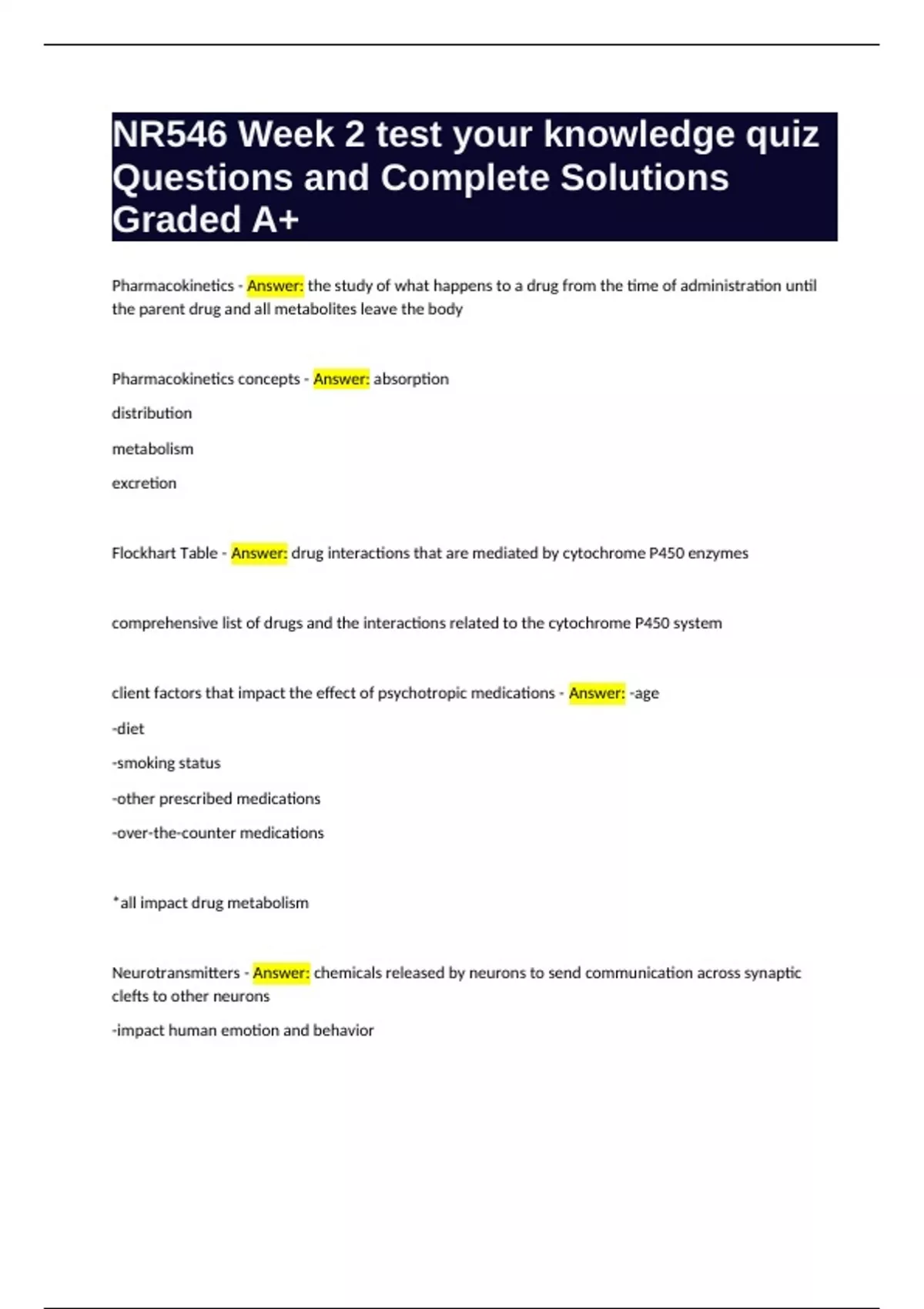 NR546 Week 2 test your knowledge quiz Questions and Complete Solutions Graded A+