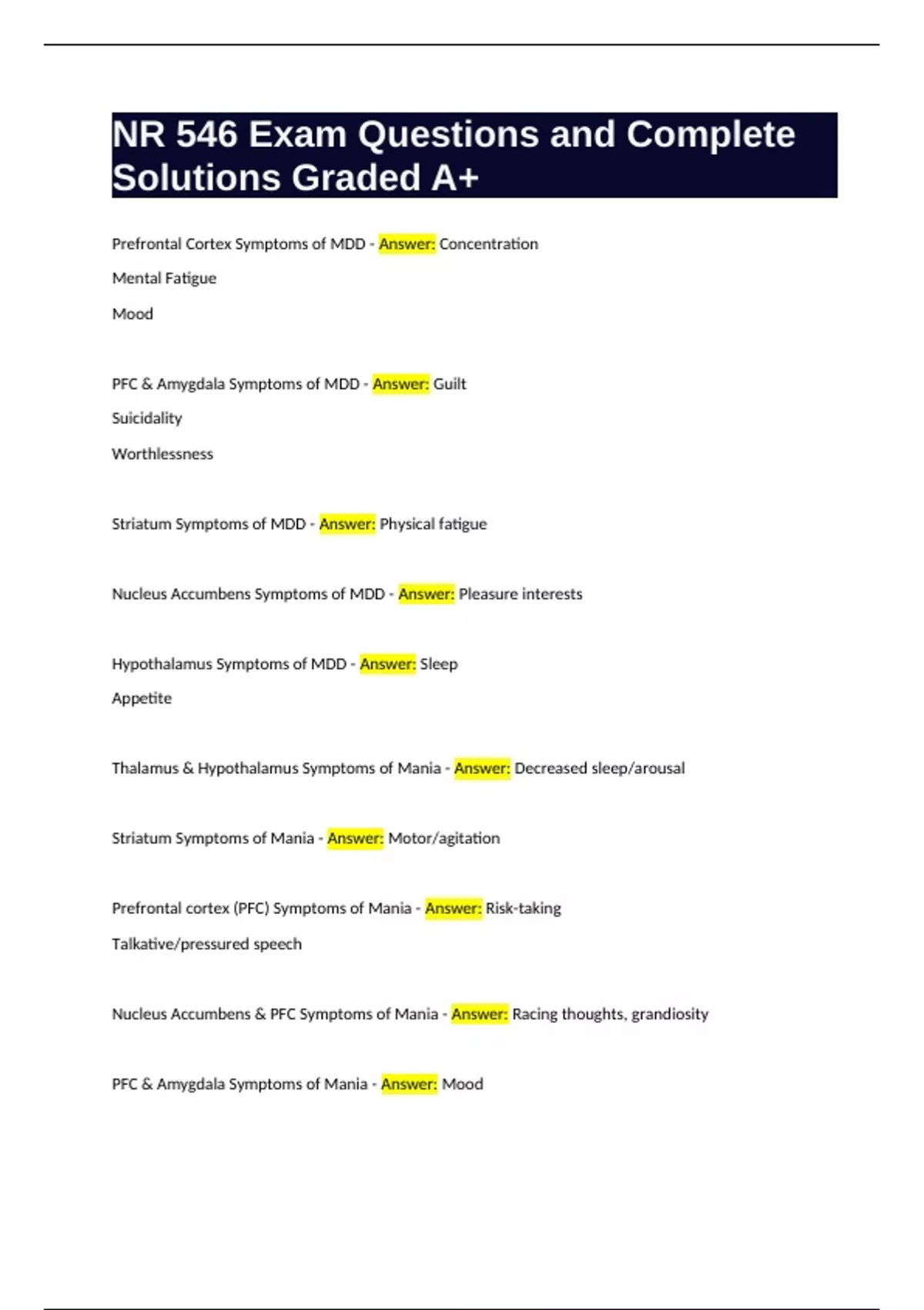 NR 546 Exam Questions and Complete Solutions Graded A+