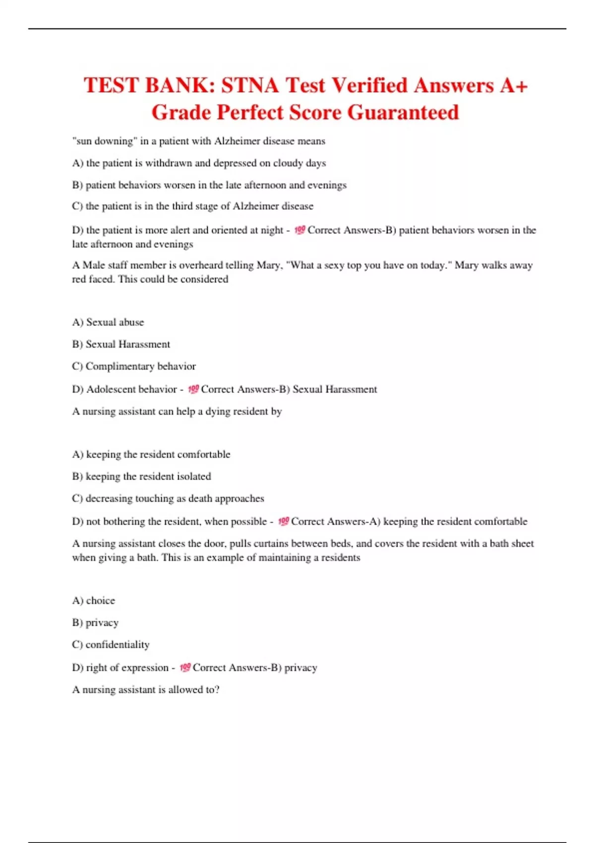 D) Adolescent behavior - Correct Answers-B) Sexual Harassment