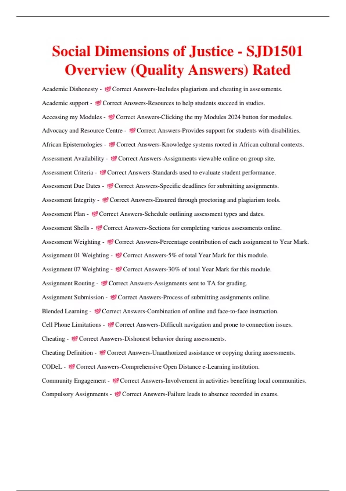 Social Dimensions of Justice - SJD1501 Overview (Quality Answers) Rated