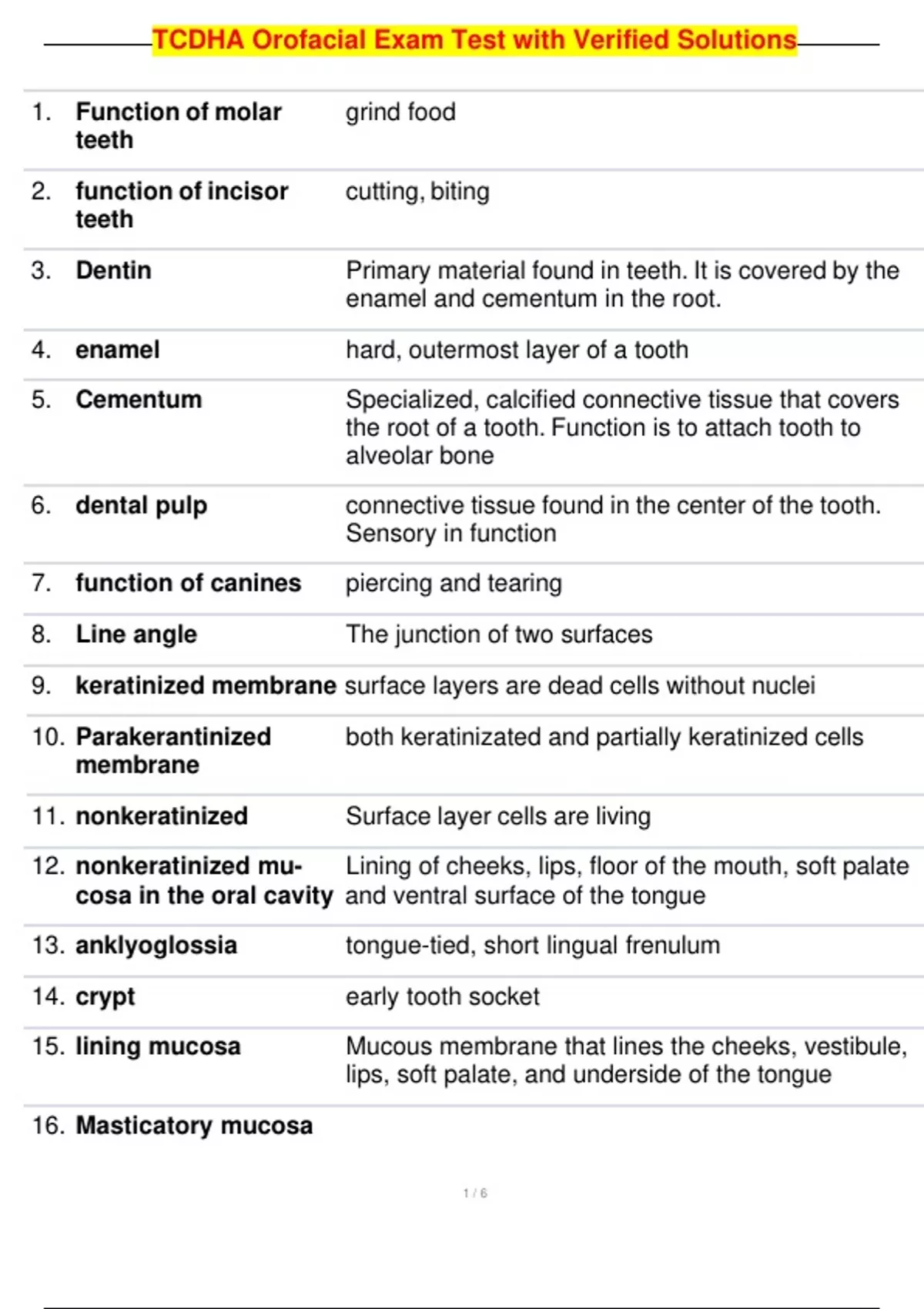 , TCDHA Orofacial Exam Test with Verified Solutions