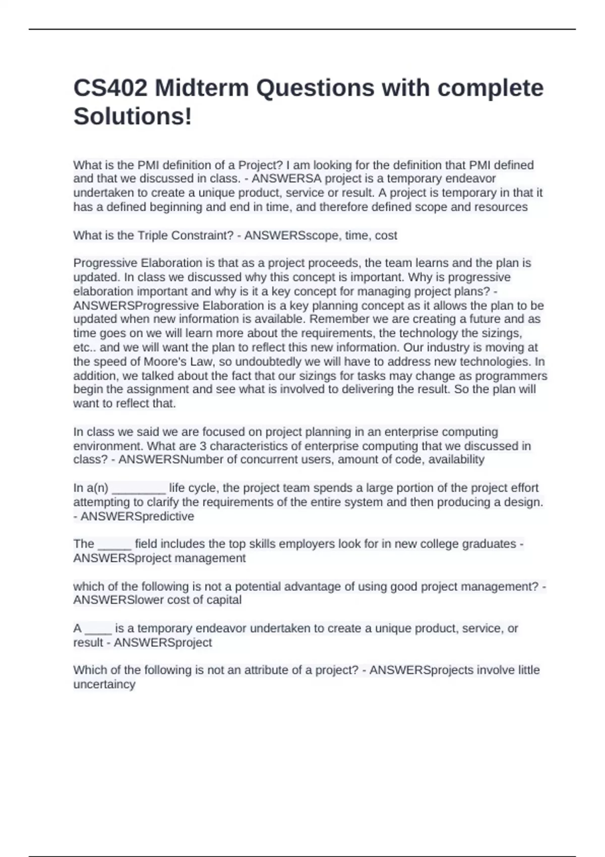 Management Institute? - ANSWERSProject Management Professional (PMP)