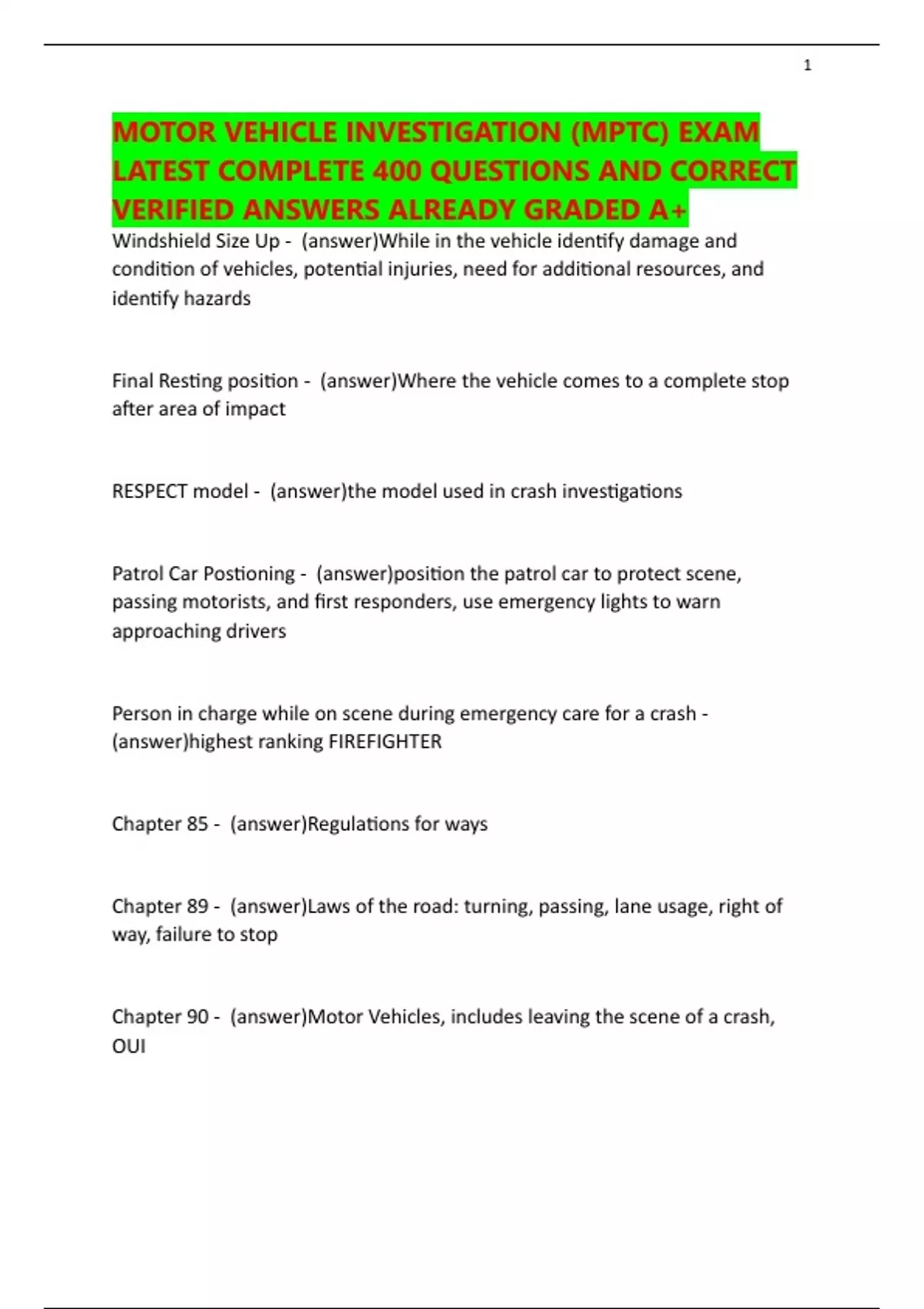 MOTOR VEHICLE INVESTIGATION (MPTC) EXAM