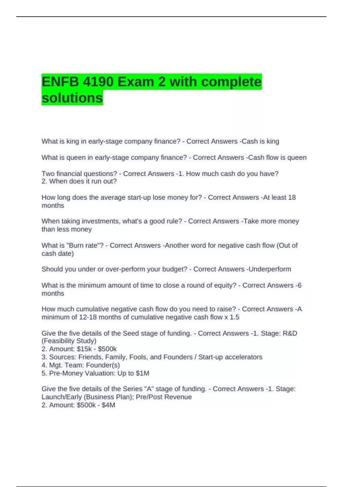 What is queen in early-stage company finance? - Correct Answers -Cash flow is queen