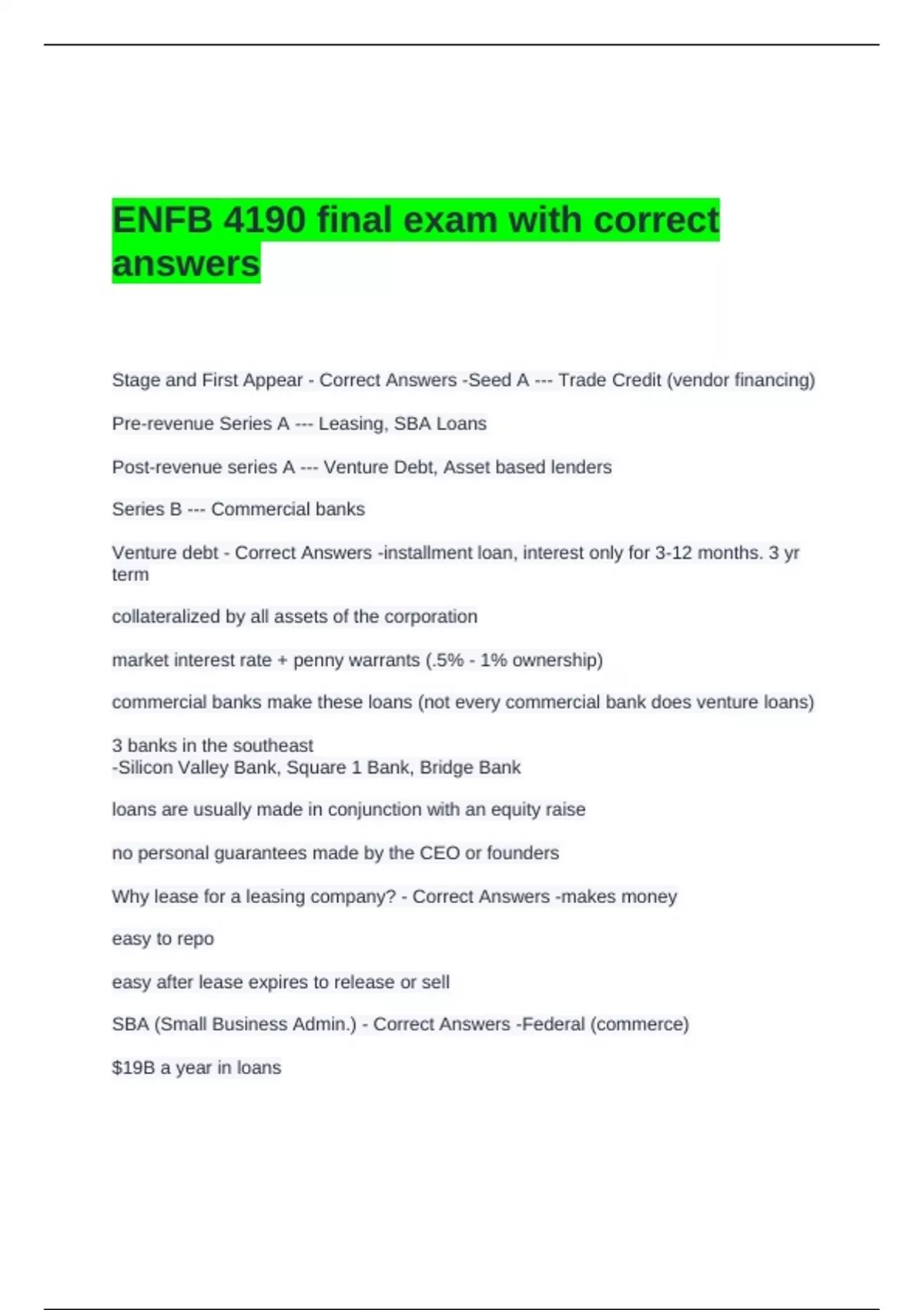 ENFB 4190 final exam with correct
