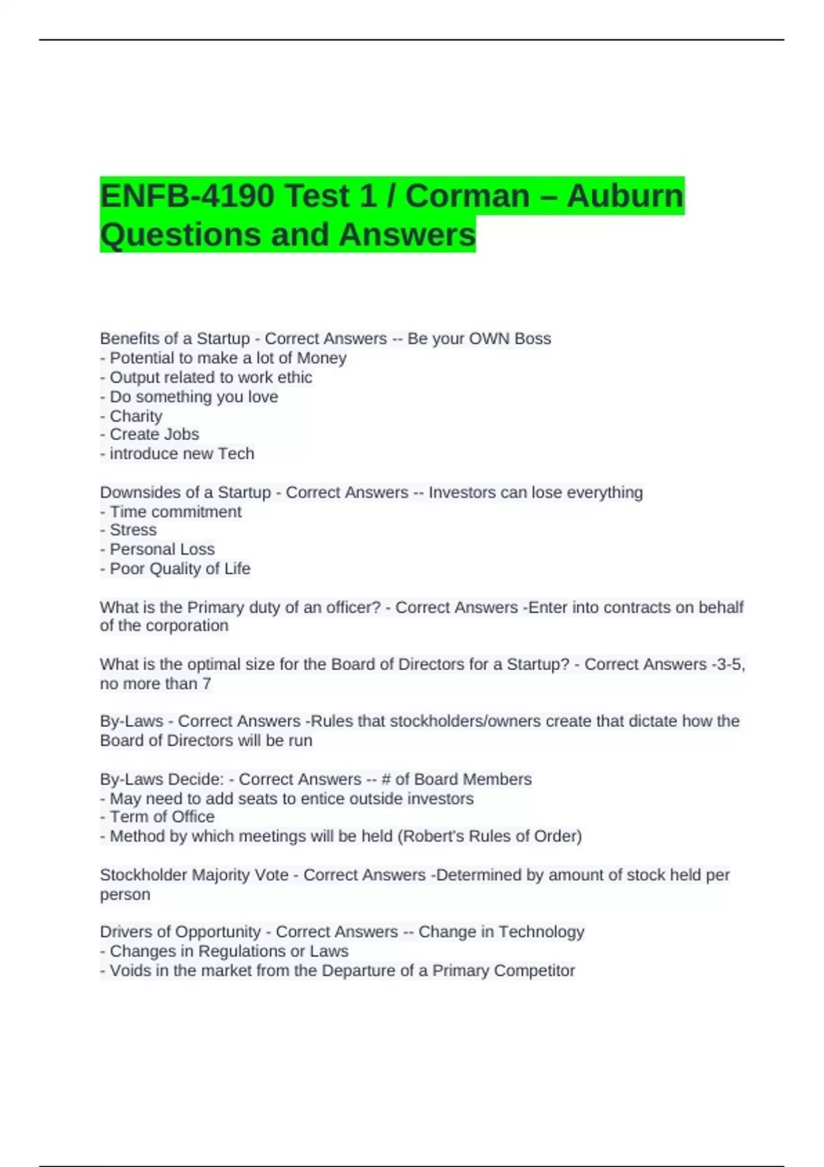 Benefits of a Startup - Correct Answers -- Be your OWN Boss