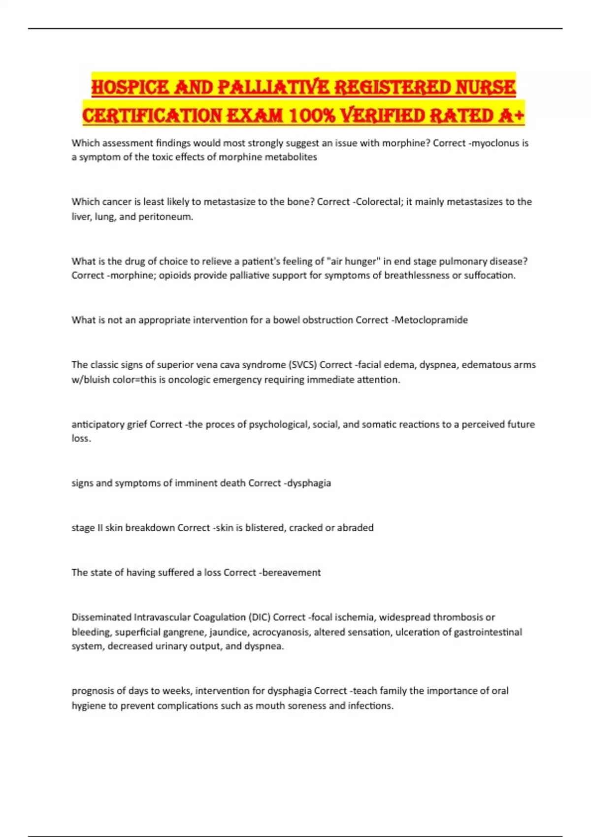 Hospice and Palliative Registered Nurse Certification exam 100% Verified Rated A+