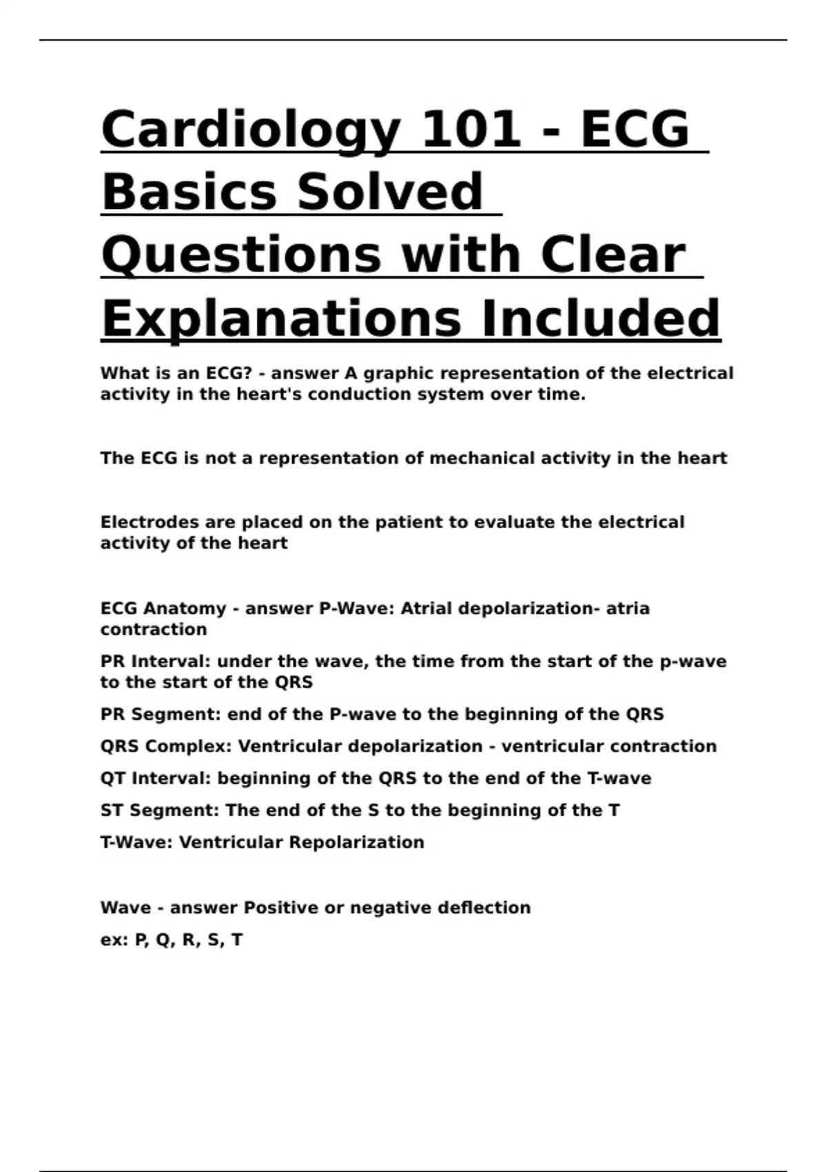 Cardiology 101 - ECG Basics Solved Questions with Clear Explanations Included.