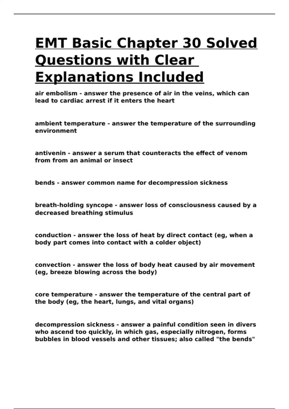 EMT Basic Chapter 30 Solved Questions with Clear Explanations Included