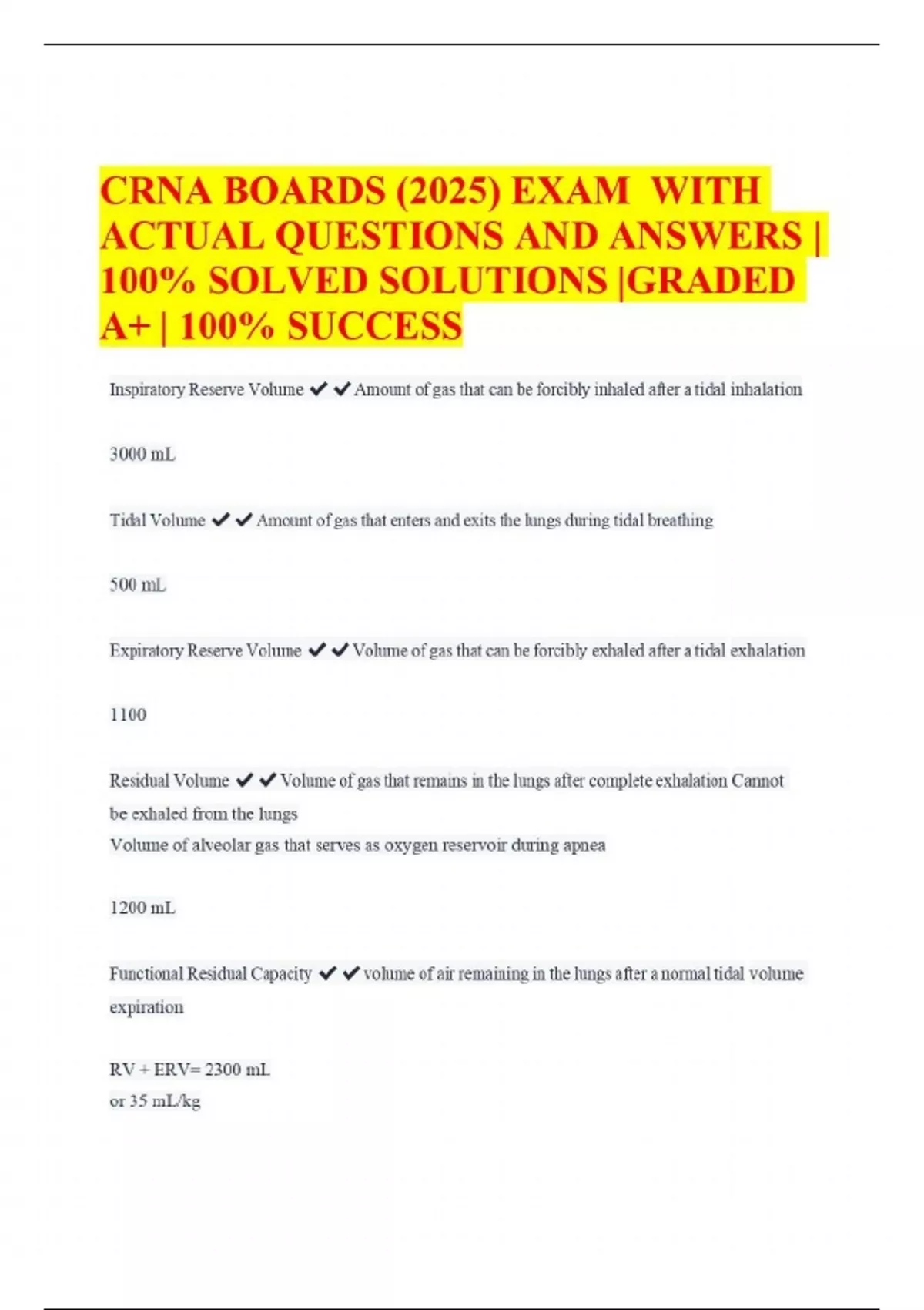 CRNA BOARDS (2025) EXAM WITH ACTUAL QUESTIONS AND ANSWERS | 100% SOLVED SOLUTIONS |GRADED A+ | 100% SUCCESS