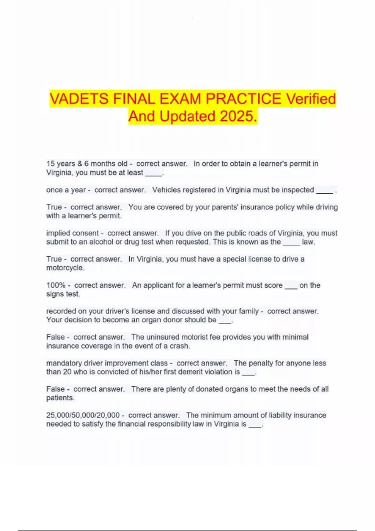 VADETS FINAL EXAM PRACTICE Verified And Updated 2025.