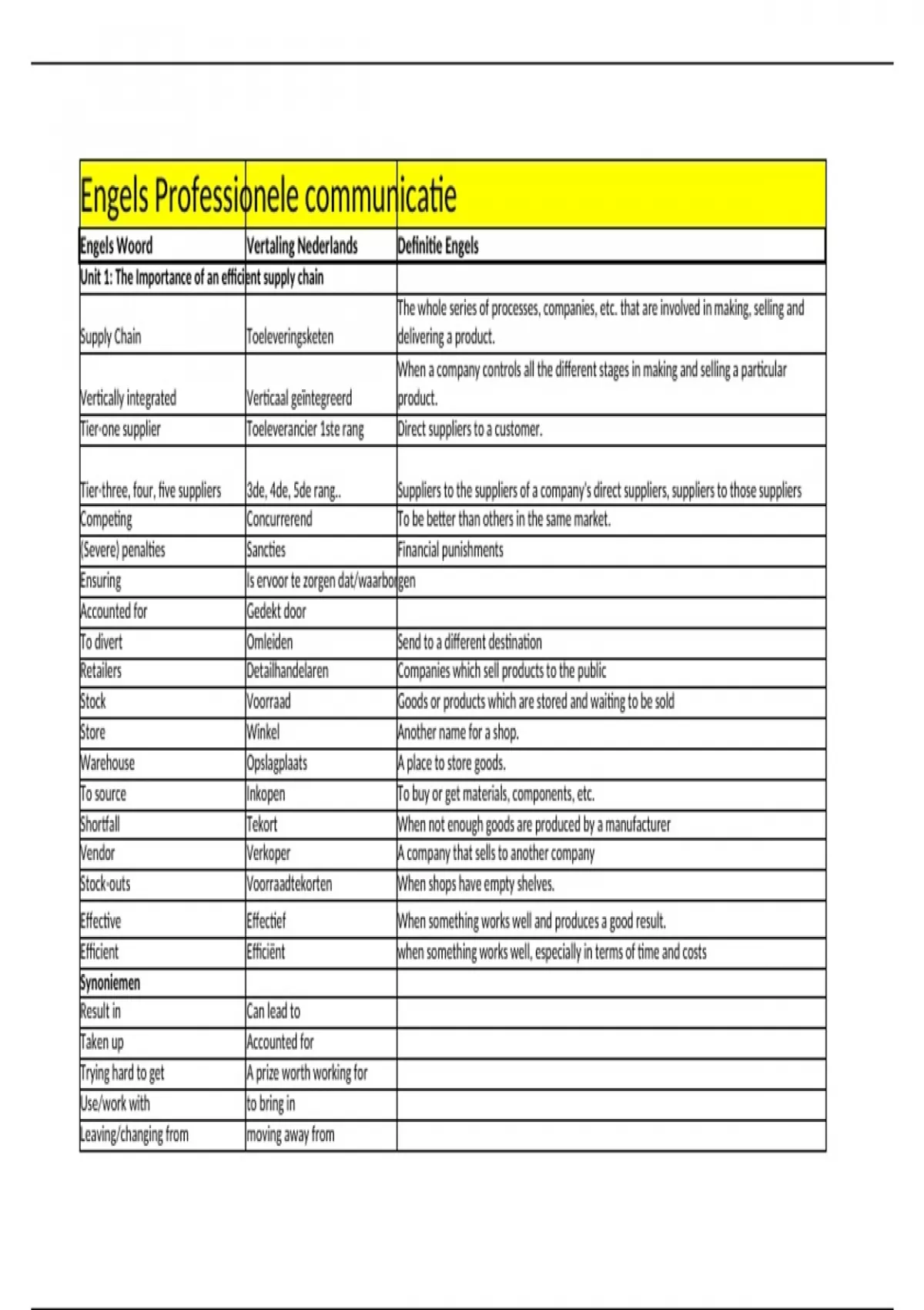 Shortfall Tekort When not enough goods are produced by a manufacturer