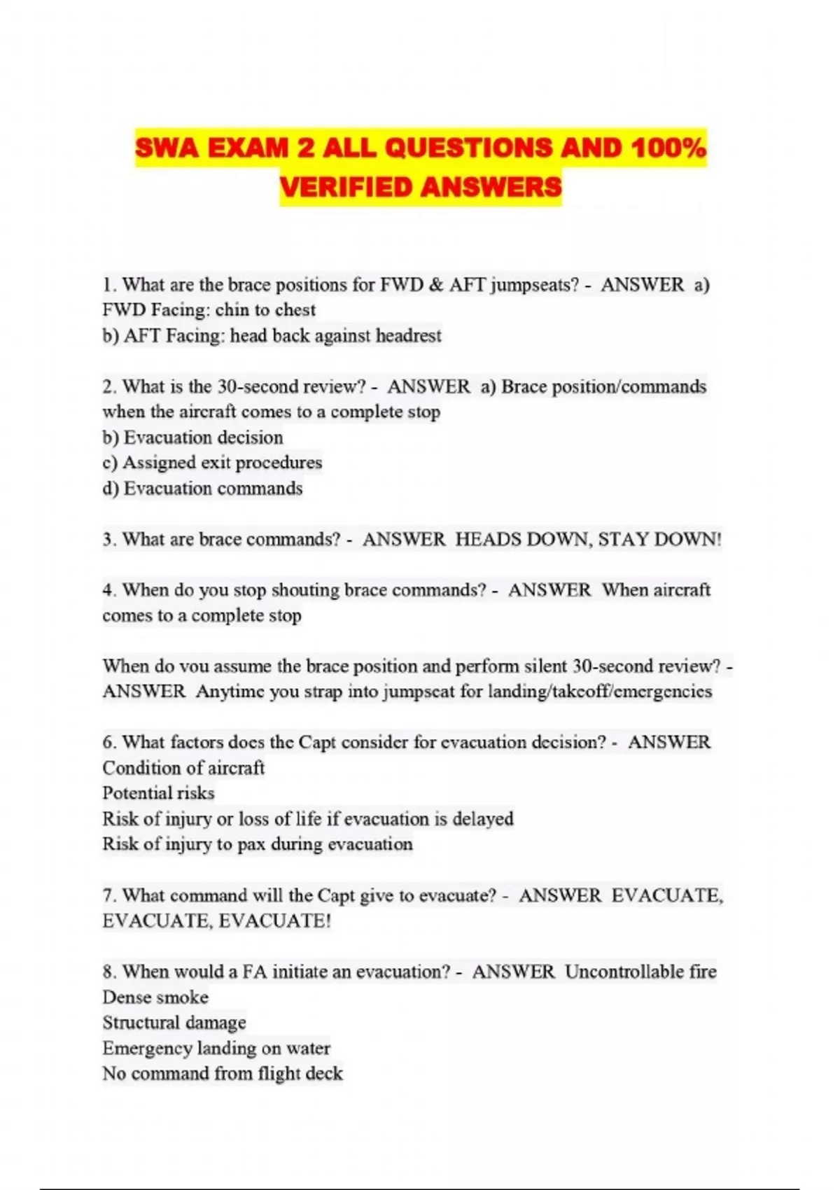 SWA EXAM 2 ALL QUESTIONS AND 100% VERIFIED ANSWERS...
