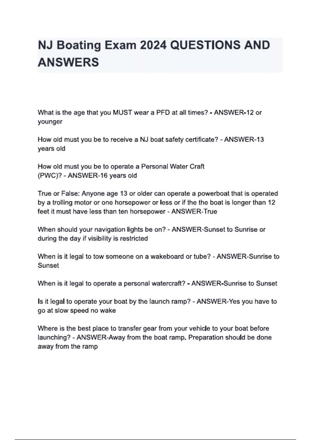 NJ Boating Exam 2024 QUESTIONS AND ANSWERS