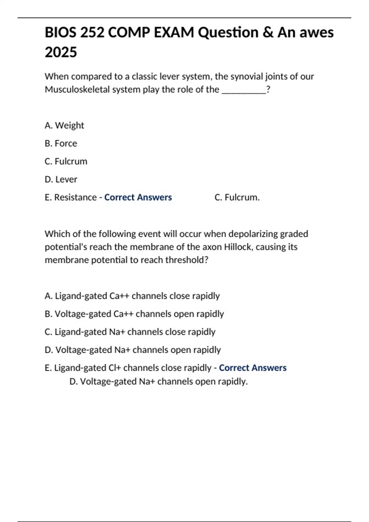 E. Does not represent a lever system - Correct Answers ✅✅A.