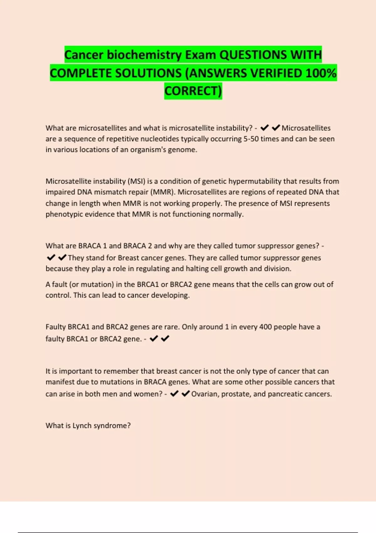 Cancer biochemistry Exam QUESTIONS WITH