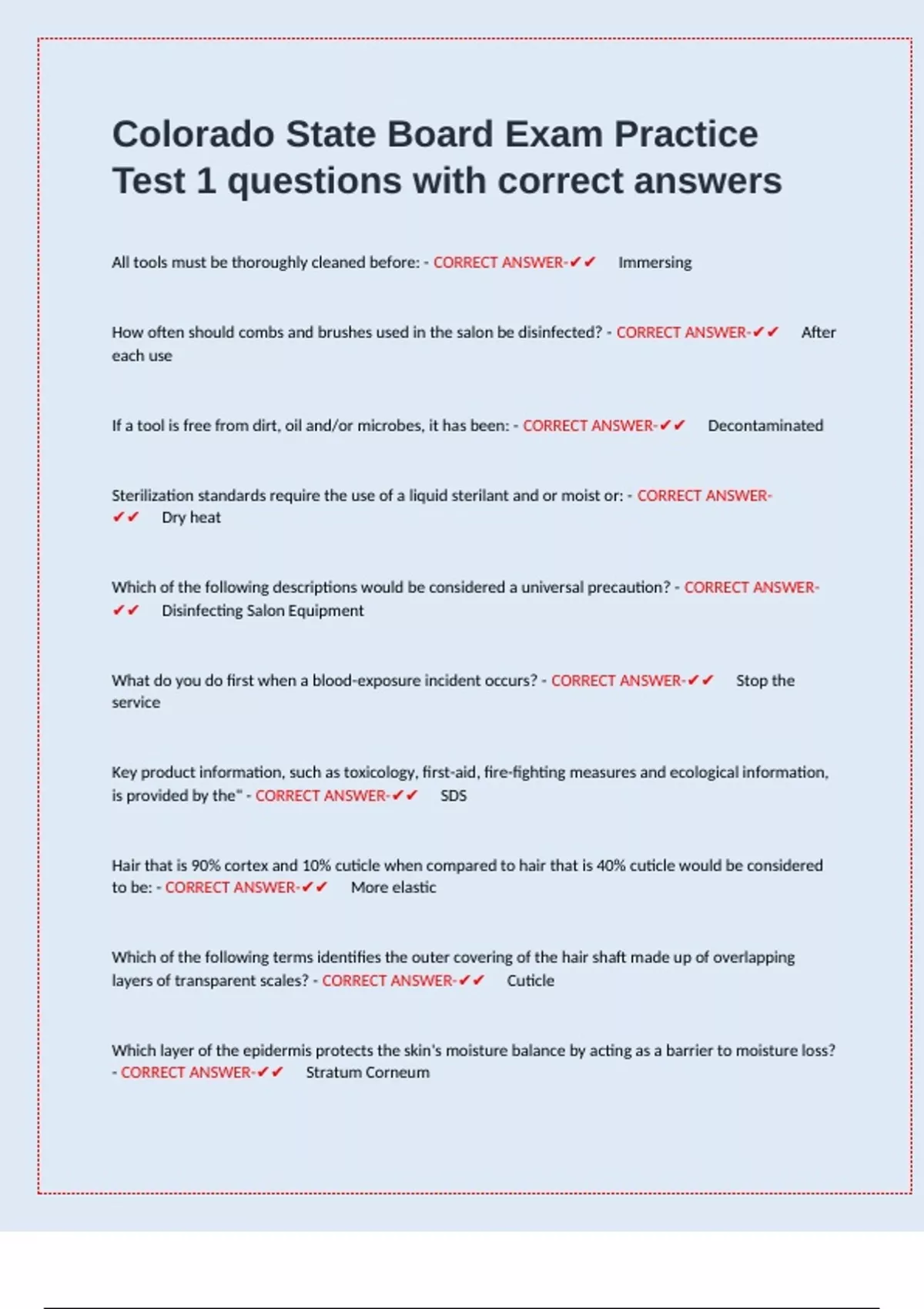 Colorado State Board Exam Practice Test 1 questions with correct answers.