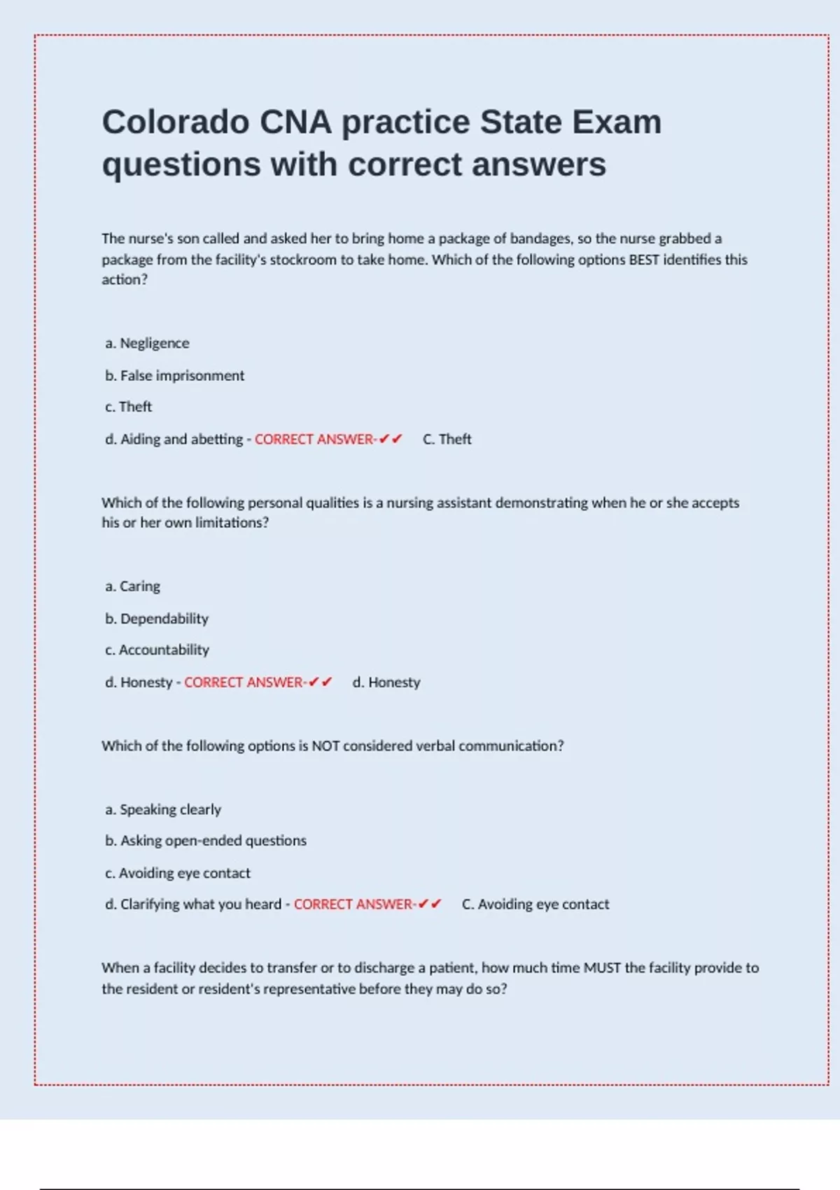 Colorado CNA practice State Exam