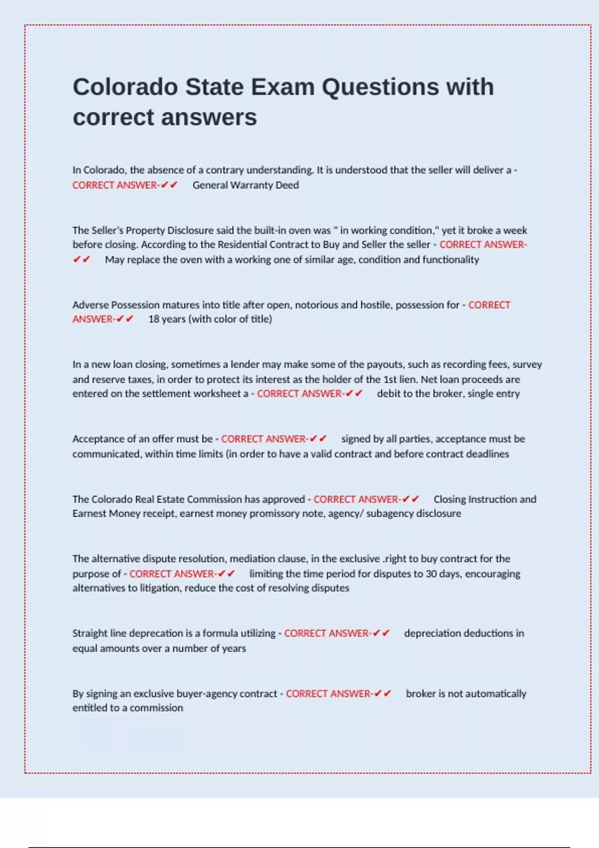 The Colorado Real Estate Commission has approved - CORRECT ANSWER-✔✔✅Closing Instruction and