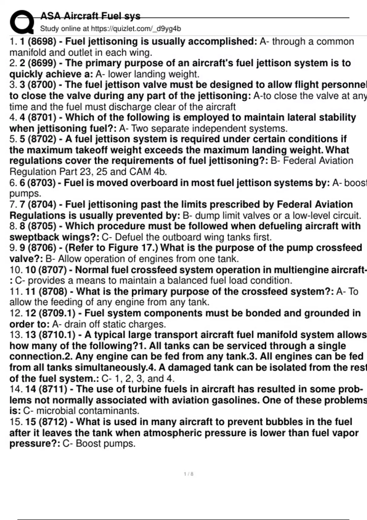 1. 1 (8698) - Fuel jettisoning is usually accomplished: A- through a common