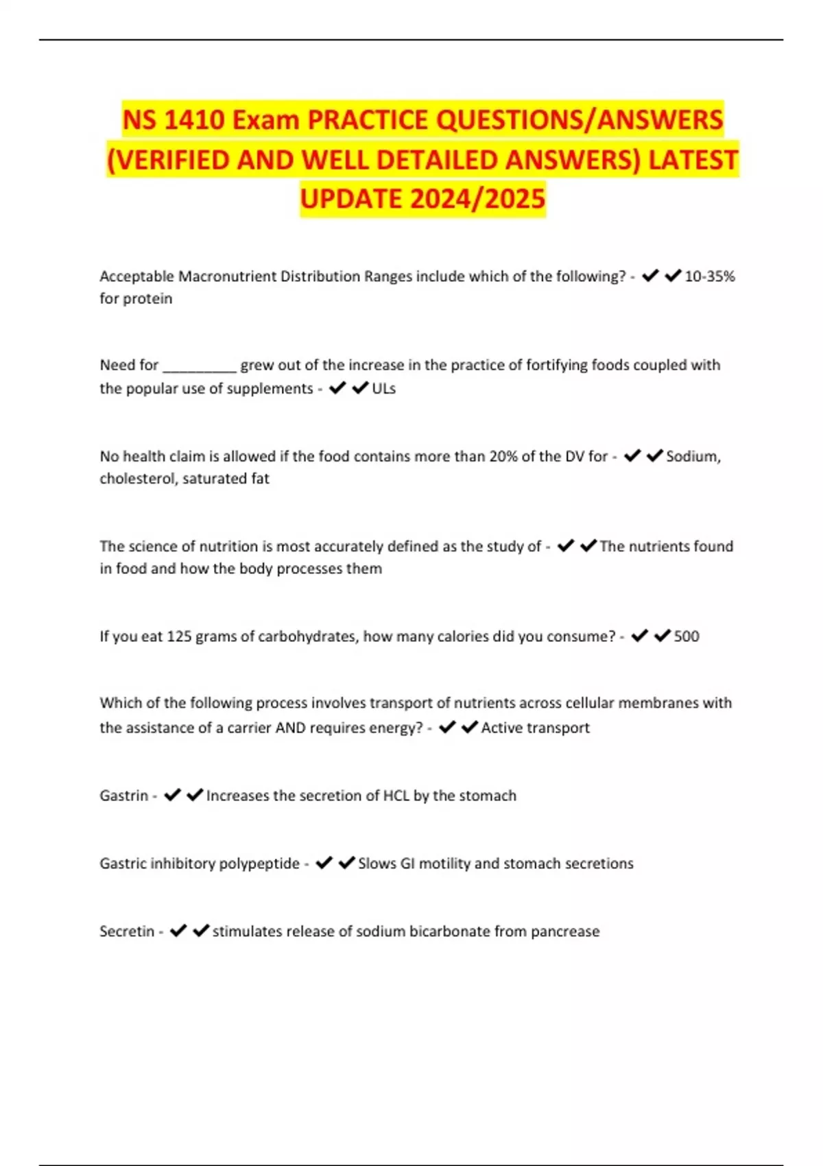 NS 1410 Exam PRACTICE QUESTIONS/ANSWERS