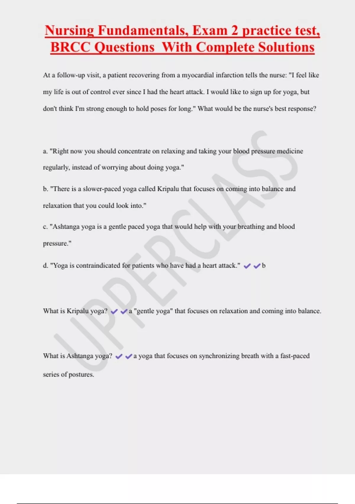 d. "Yoga is contraindicated for patients who have had a heart attack." b