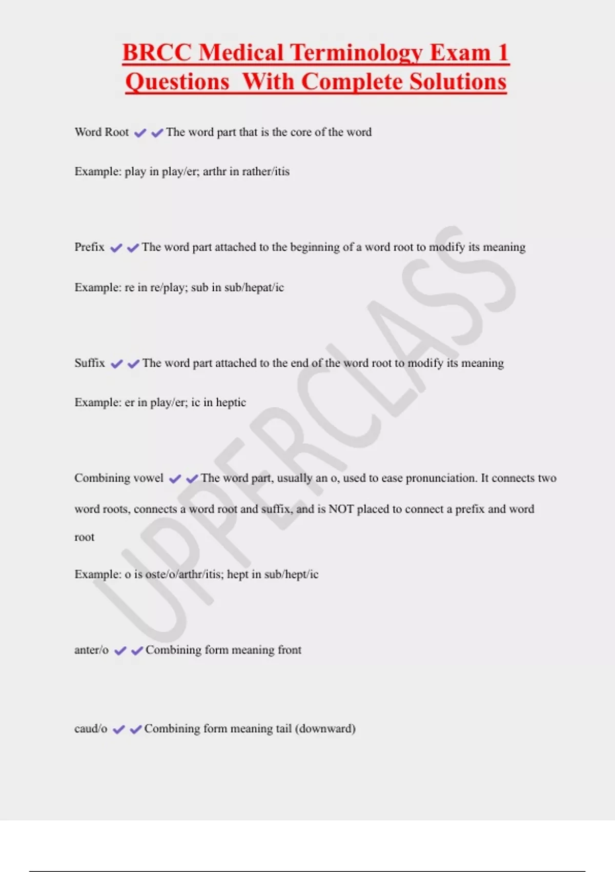 , BRCC Medical Terminology Exam 1