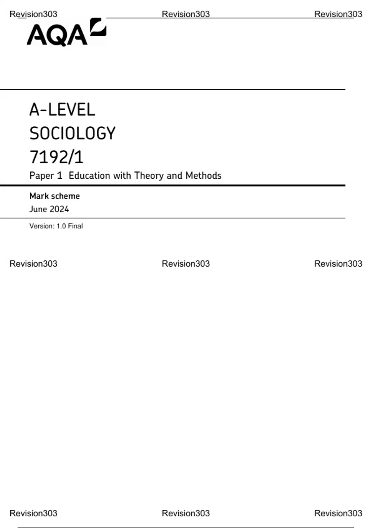 MARK SCHEME – A-LEVEL SOCIOLOGY – 7192/1 – JUNE 2024
