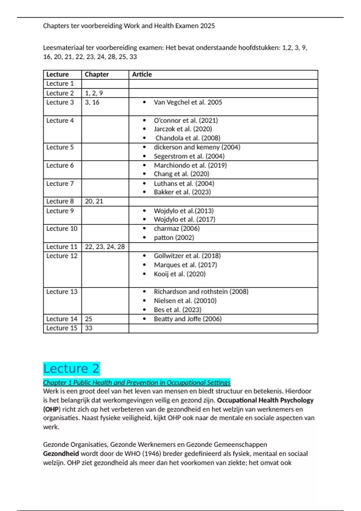 ,Chapters ter voorbereiding Work and Health Examen 2025