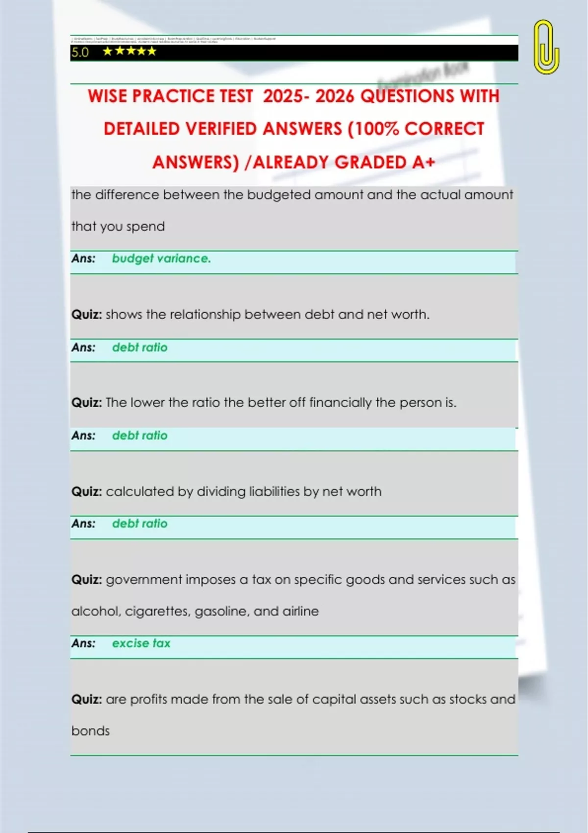WISE PRACTICE TEST 2025- 2026 QUESTIONS WITH