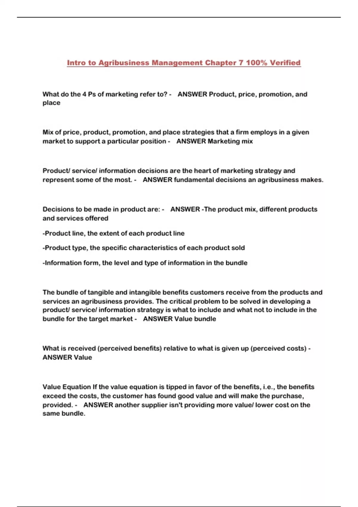 Intro to Agribusiness Management Chapter 7 100% Verified