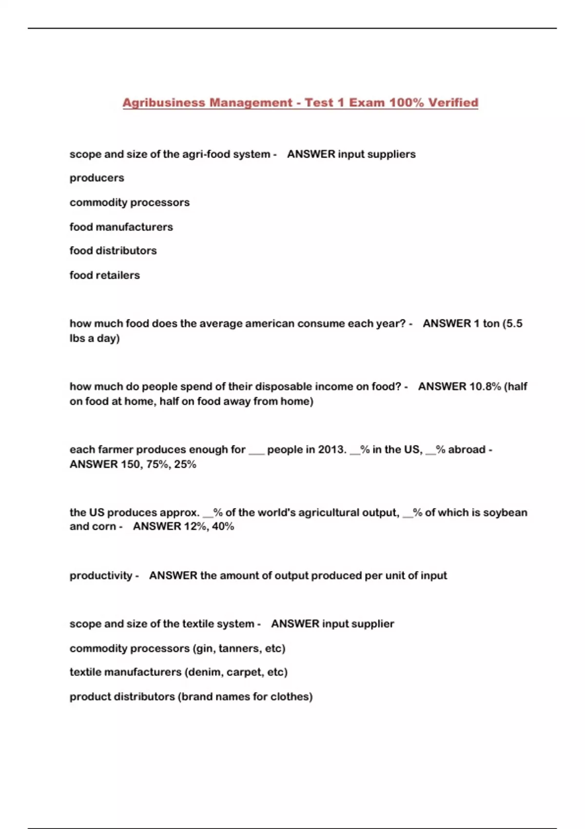 Agribusiness Management - Test 1 Exam 100% Verified...