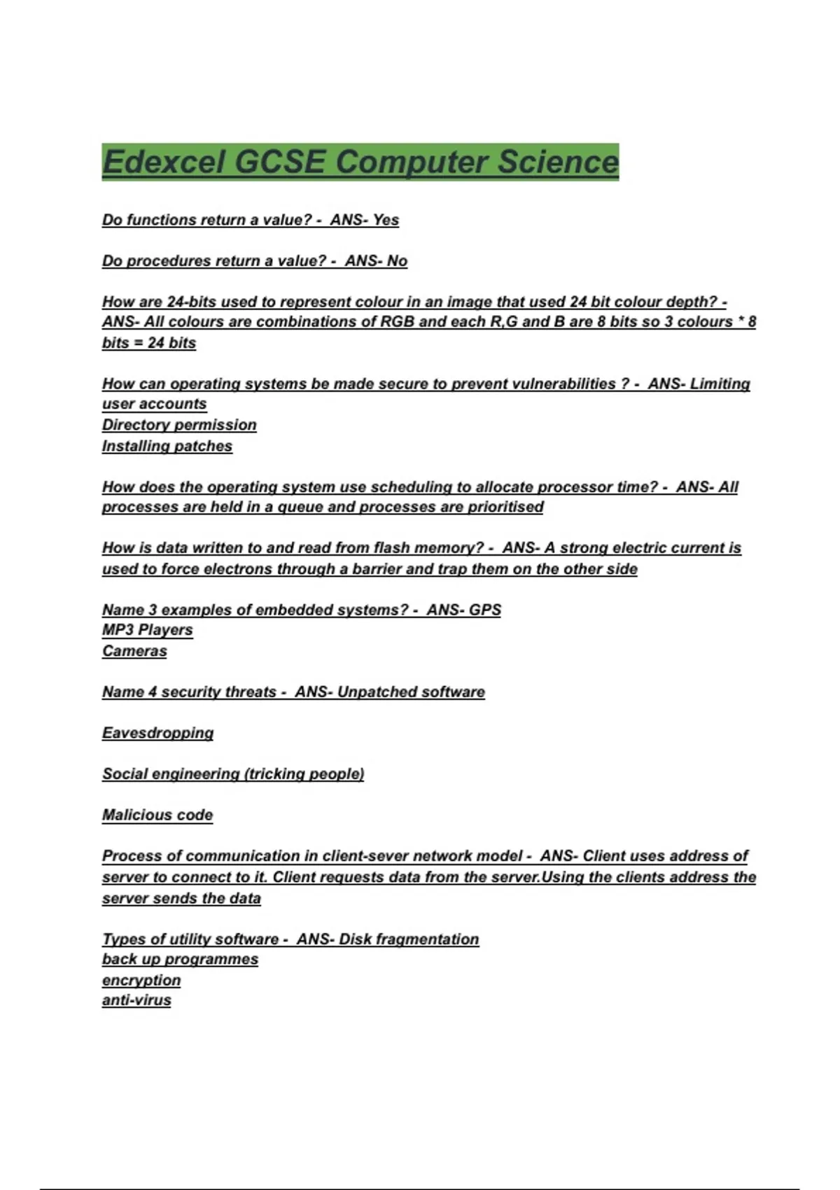 Edexcel GCSE Computer Science Exam Questions and Answers 2025( A+ GRADED 100% VERIFIED).
