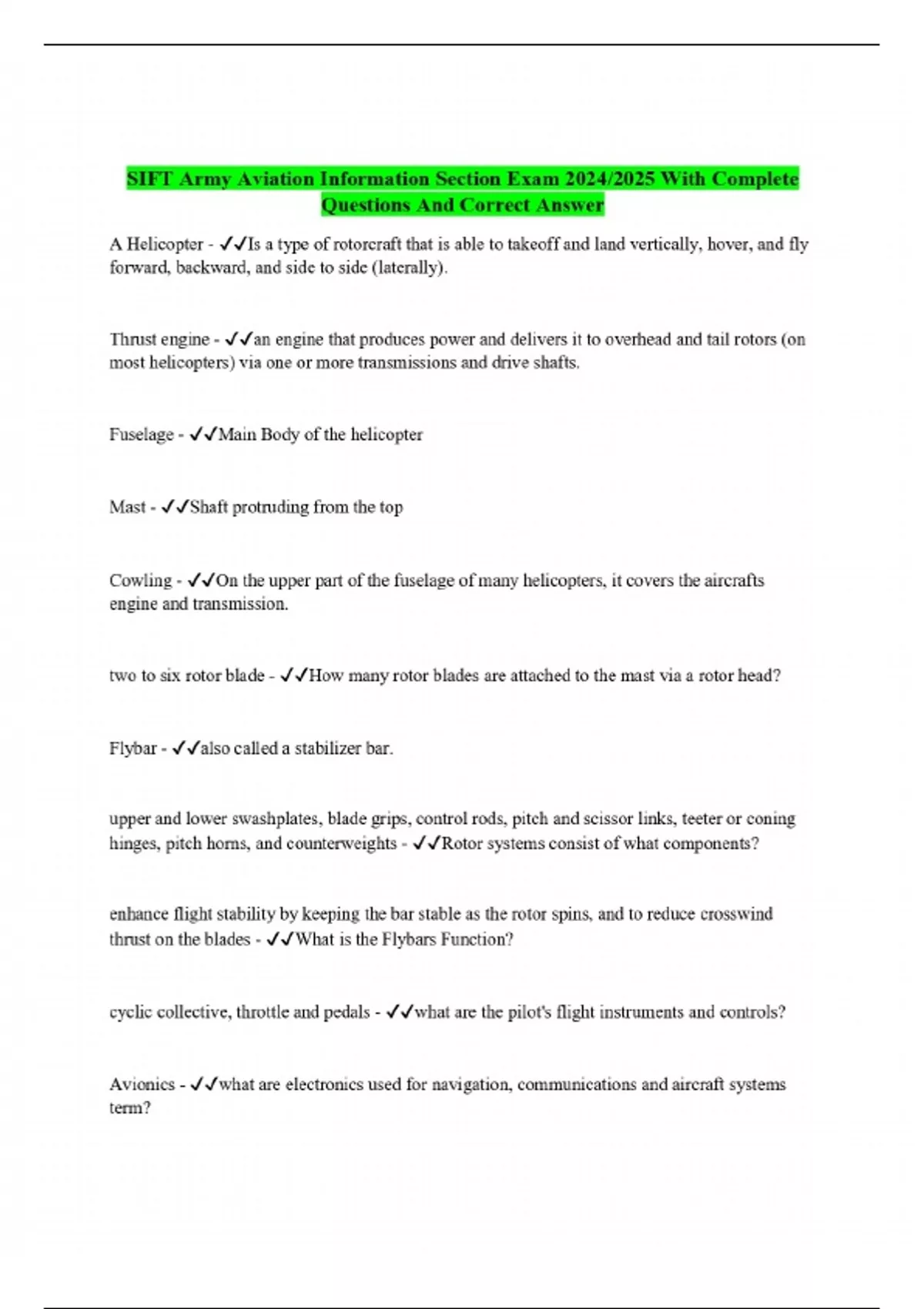 SIFT Army Aviation Information Section Exam 2024/2025 With Complete Questions And Correct Answer
