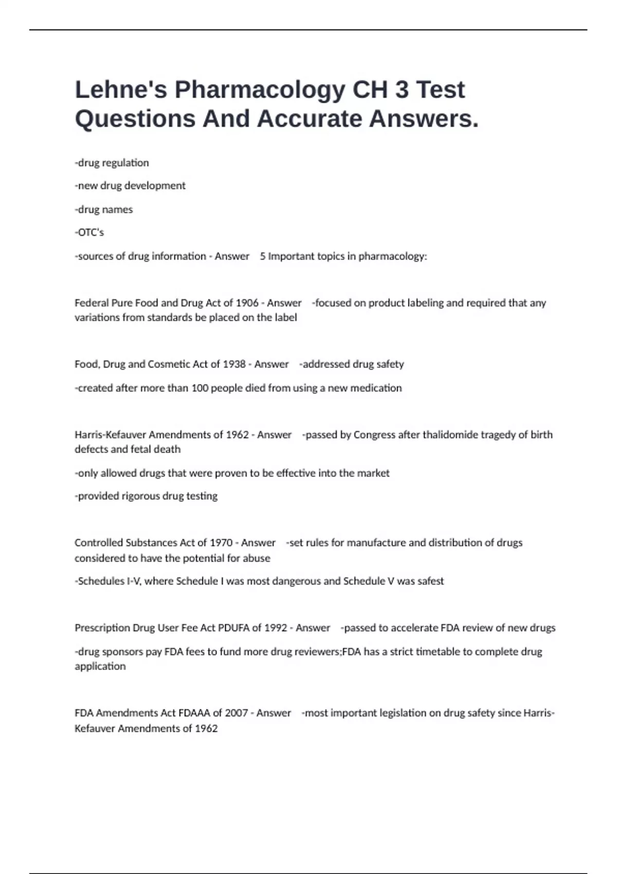 FDA Amendments Act FDAAA of 2007 - Answer -most important legislation on drug safety since Harris-