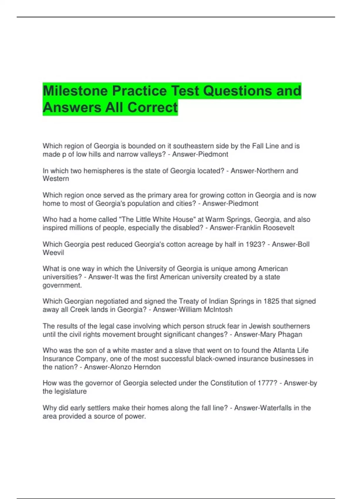 away all Creek lands in Georgia? - Answer-William McIntosh