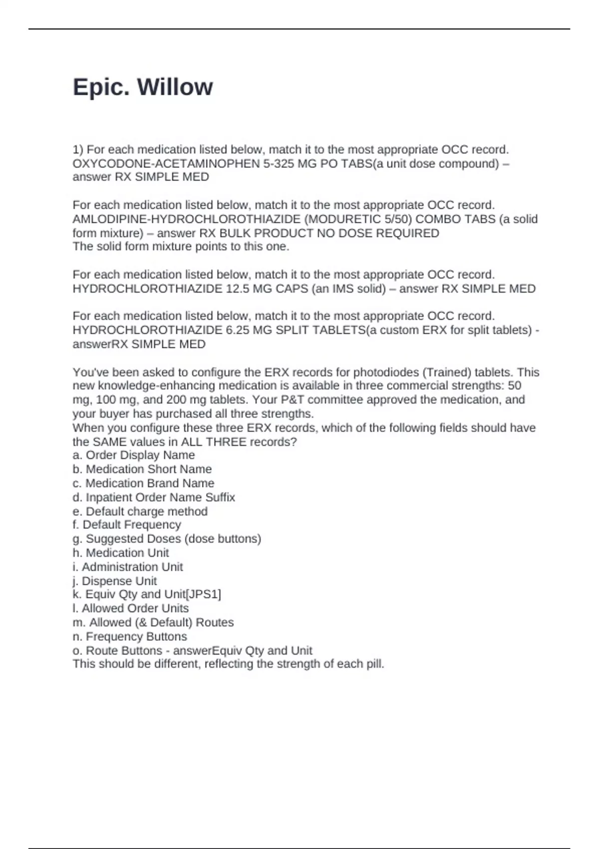 1) For each medication listed below, match it to the most appropriate OCC record.