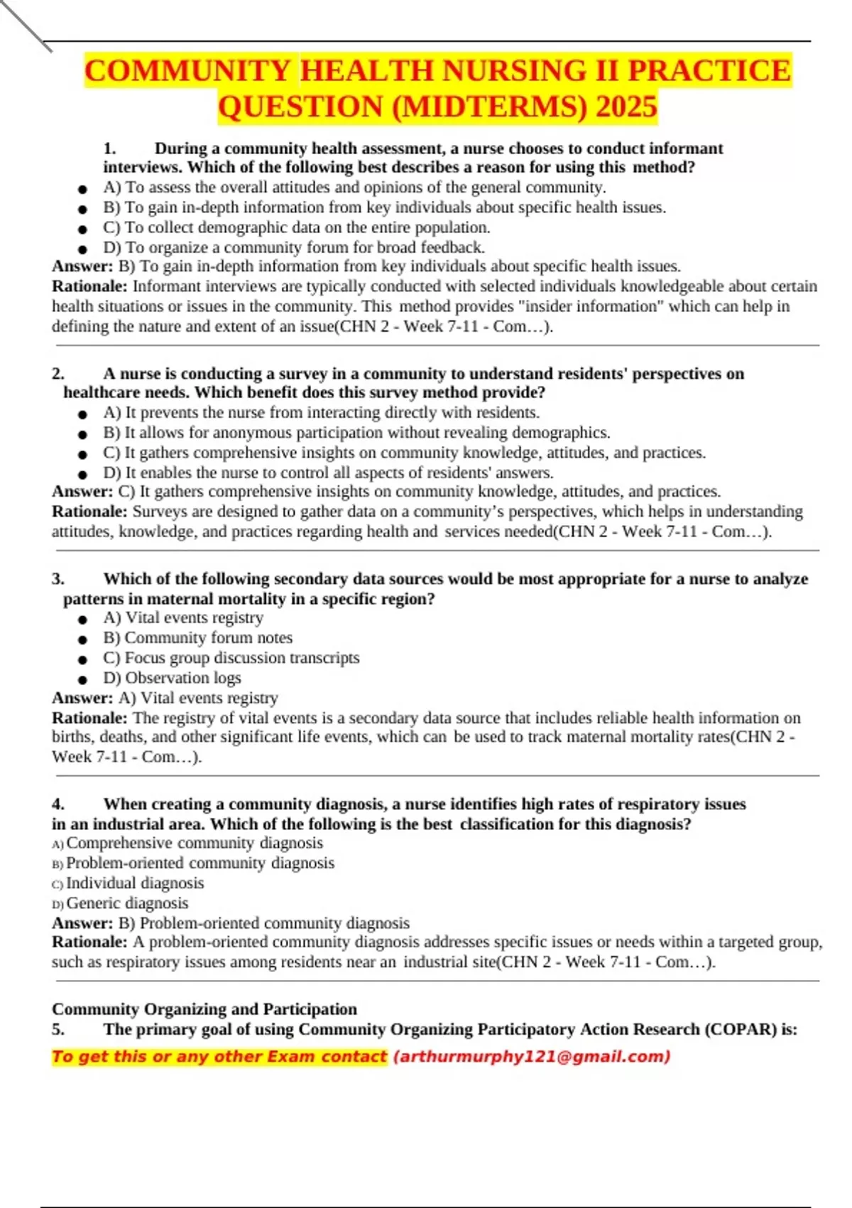COMMUNITY HEALTH NURSING II PRACTICE QUESTION (MIDTERMS) 2025