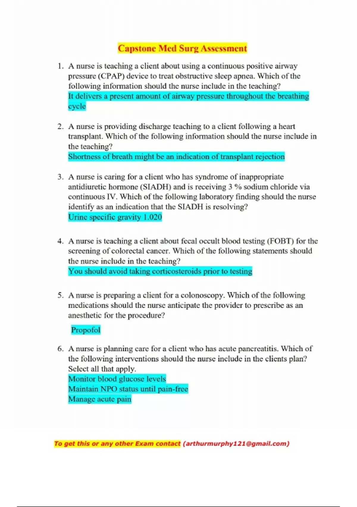 capstone med surg assessment all answers correct and WELL EXPLAINED QUESTION AND ANSWERS LATEST UPDTE 2024/2025 GRADED A+