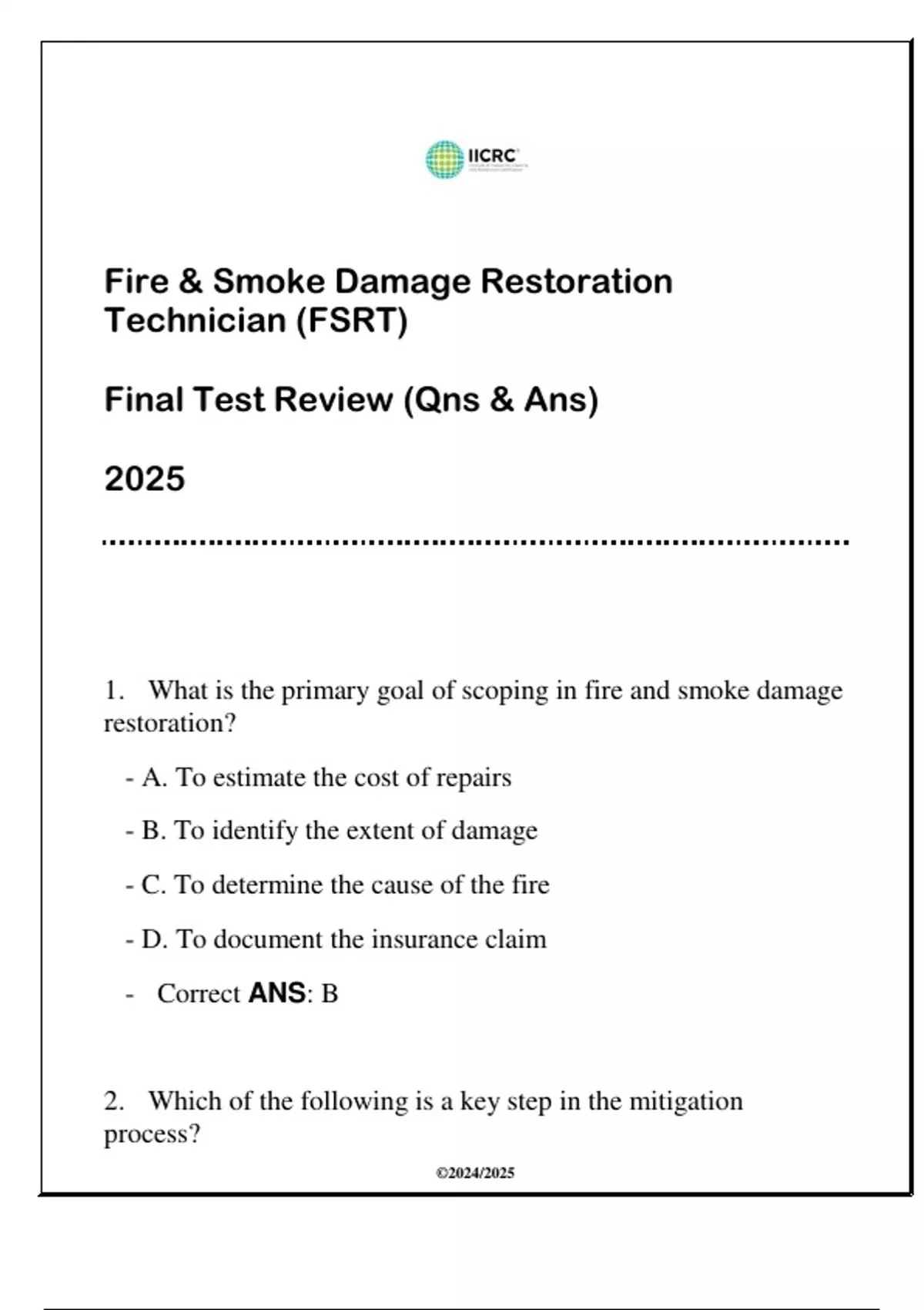 1. What is the primary goal of scoping in fire and smoke damage