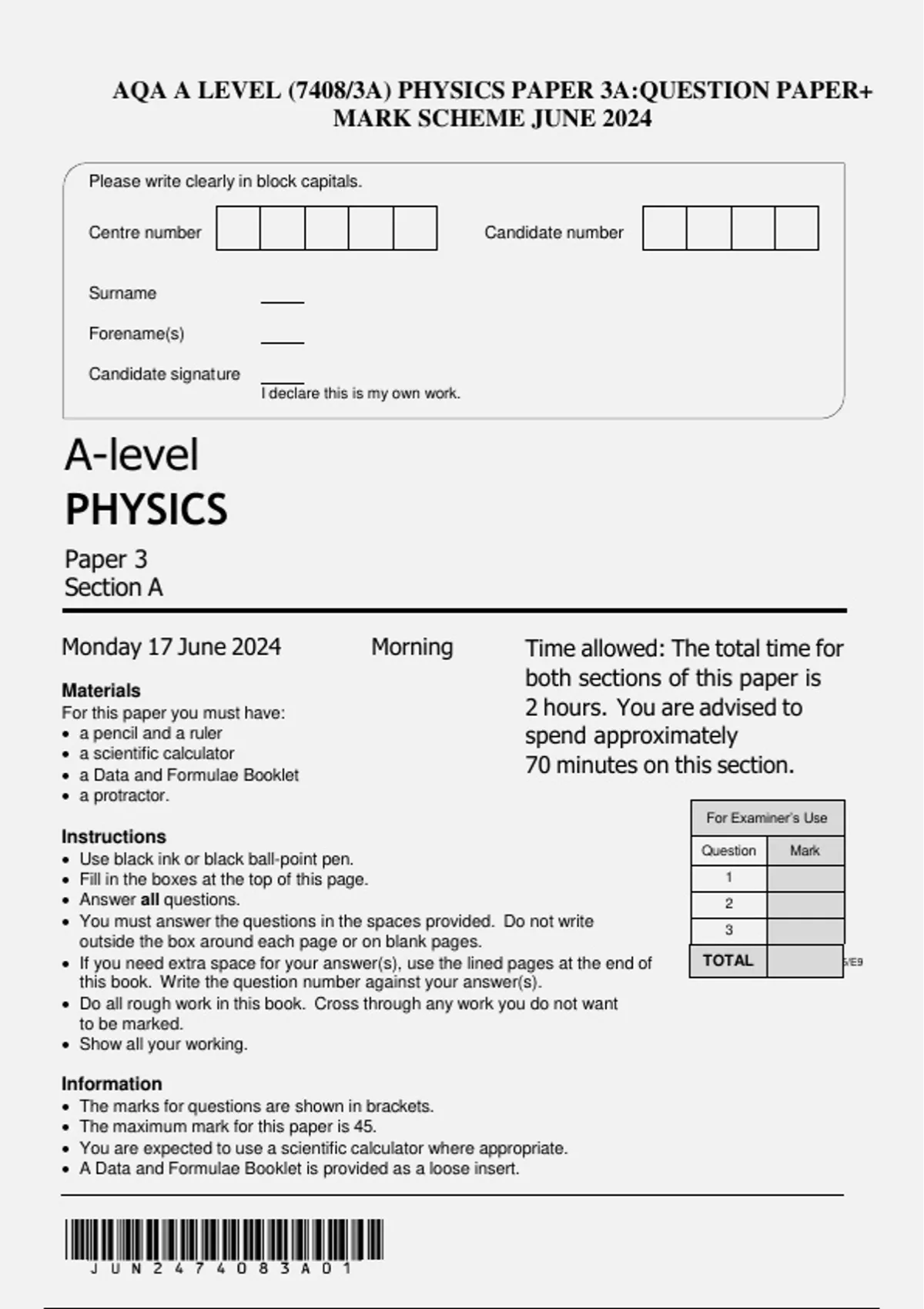 Monday 17 June 2024 Morning Time allowed: The total time for
