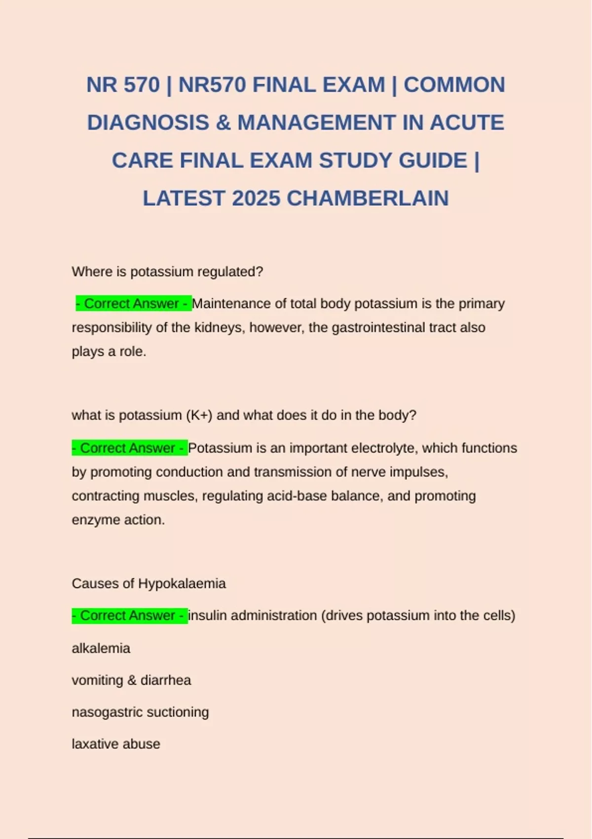 - Correct Answer - Magnesium deficiency frequently impairs potassium